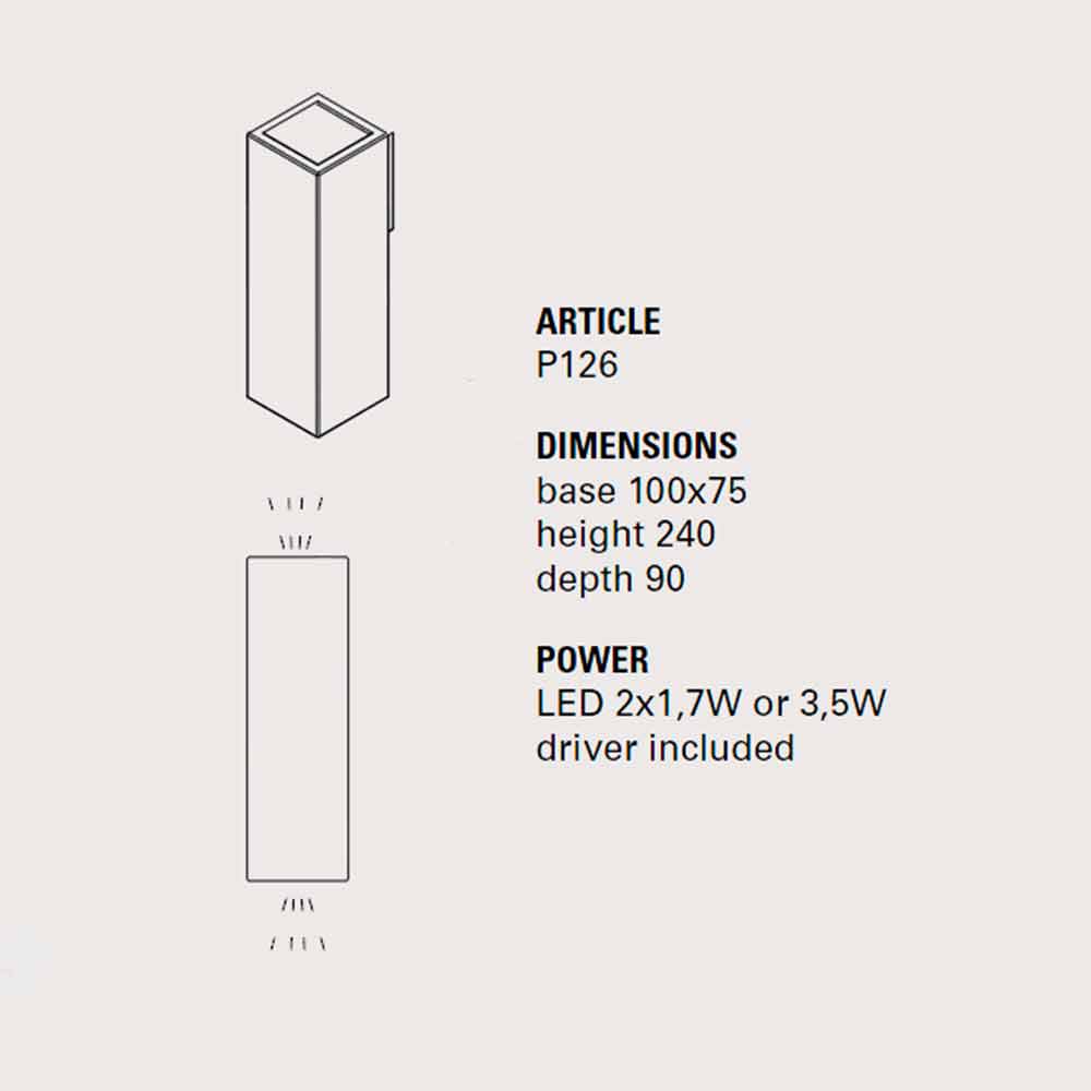 Suitable bulbs, not included:- lumens 230 2 x 1,7W IP 65, 3000K 90 ° angle;