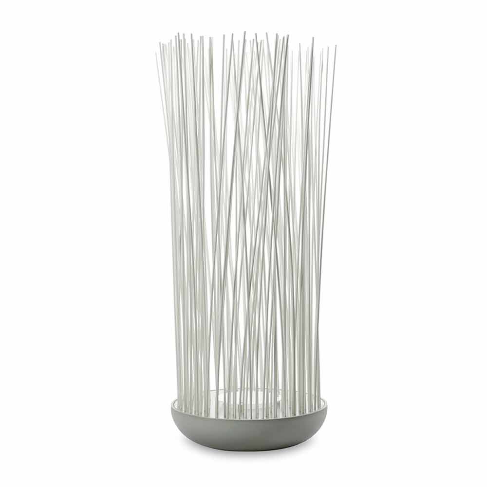 The lamp is made of matt grey technopolymer and matt white PVC rods.