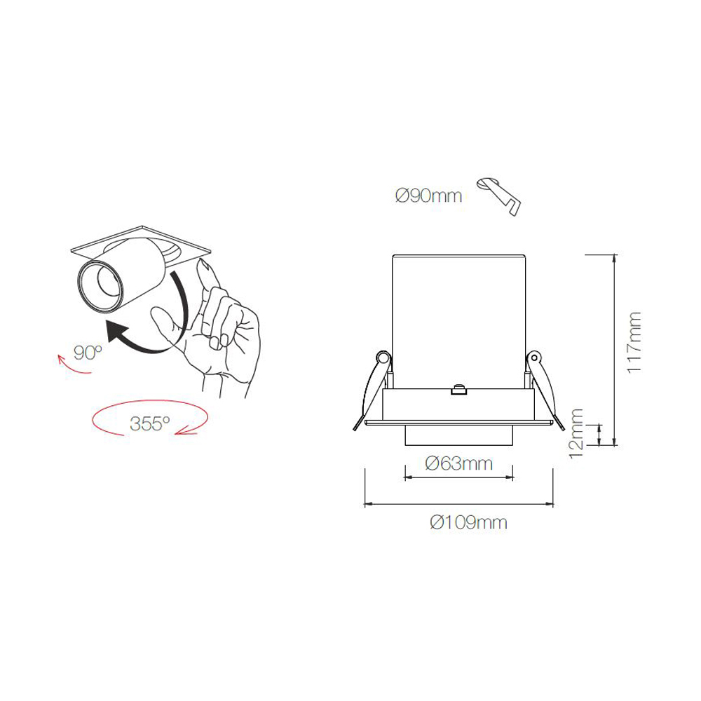Adjustable recessed led spotlight in white or black aluminium.