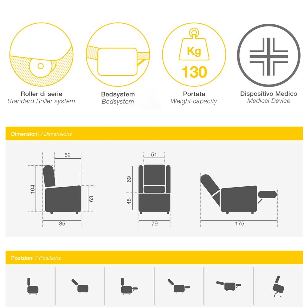 - Lift, relax and bed technology to accompany movements when sitting and getting up. The practical remote control allows you to adjust the backrest and footrest (movement independent of each other) according to your comfort needs.