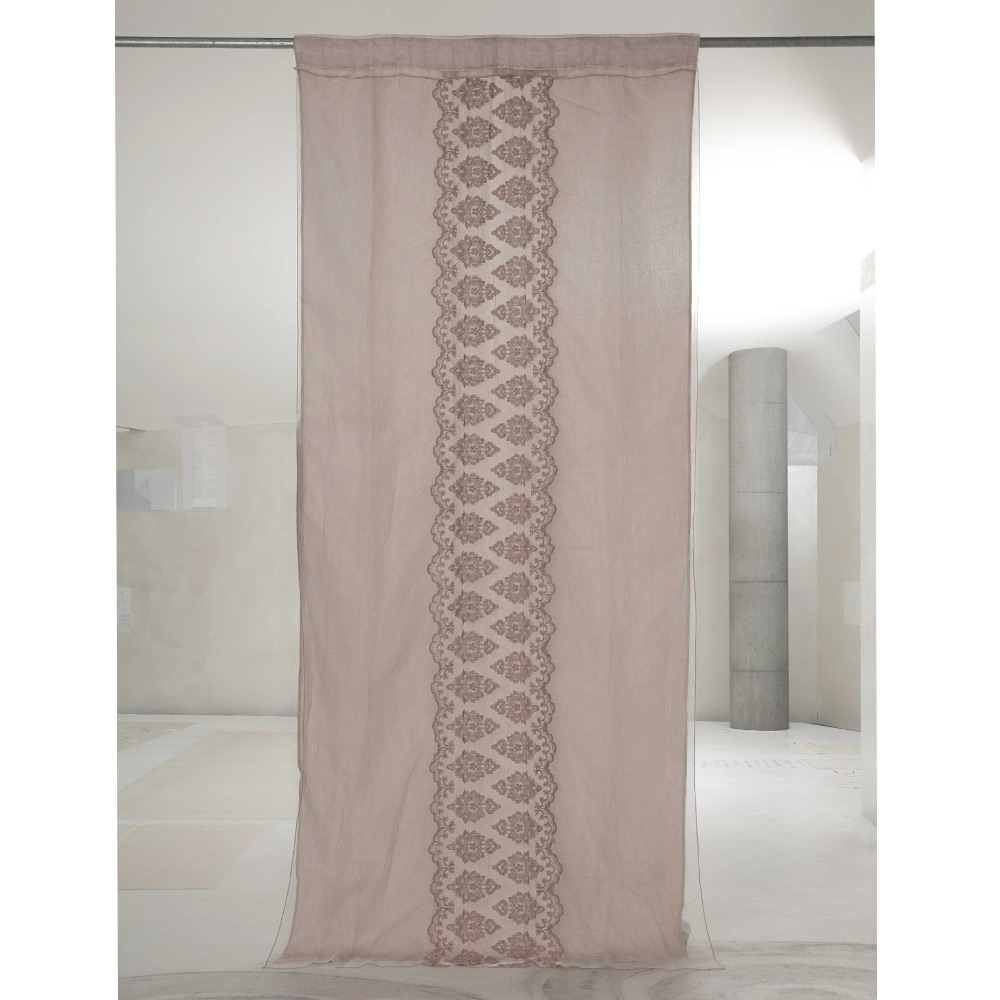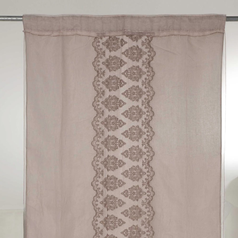 Linen and organza curtain with central embroidery and predisposition for rod, made in Italy quality.