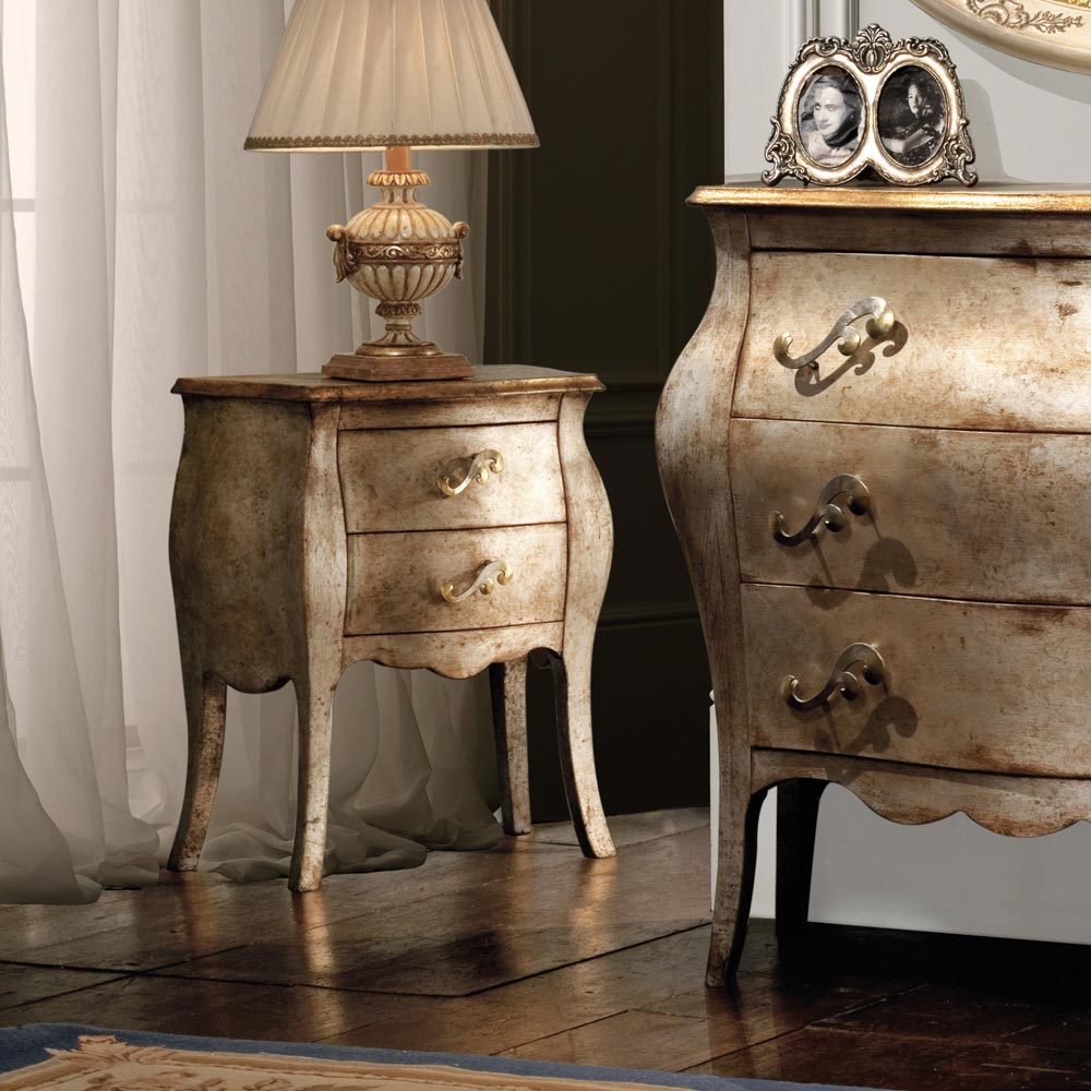 Bedside table made of Lime blockboard with handcrafted leaf finish , is composed of 2 drawers with meccata silver leaf handles.