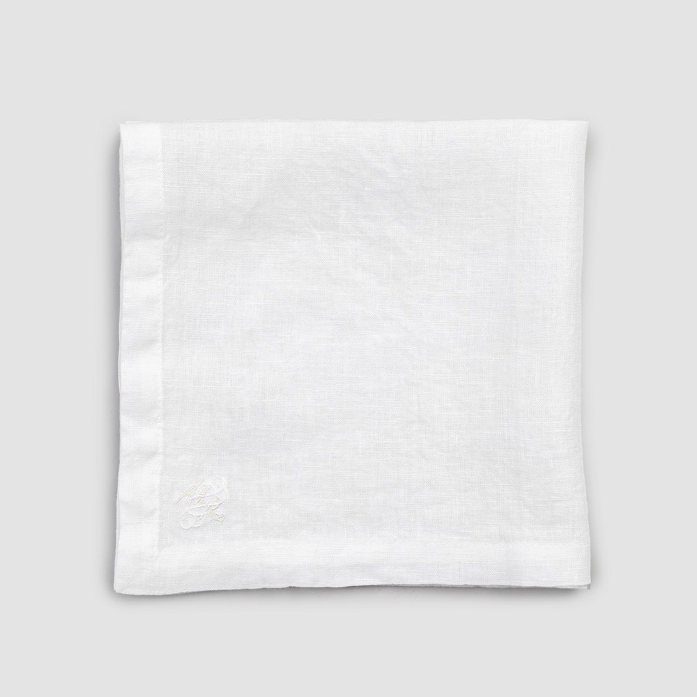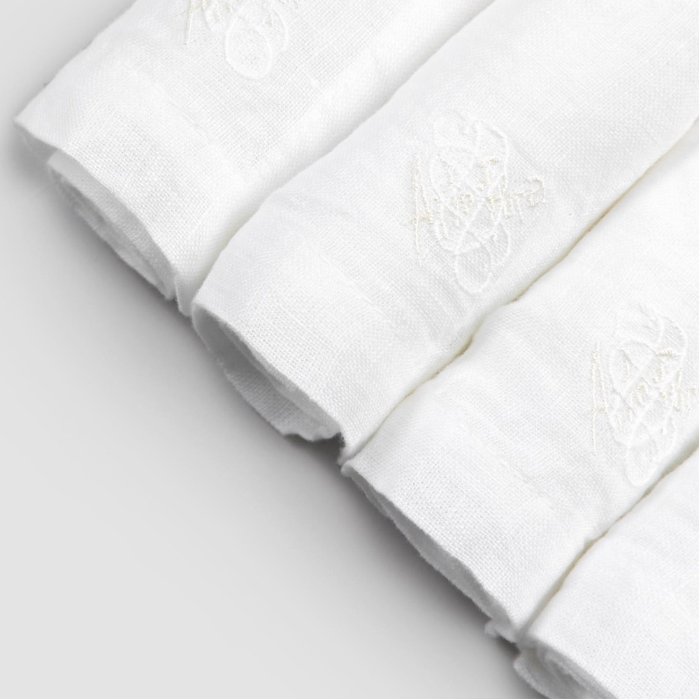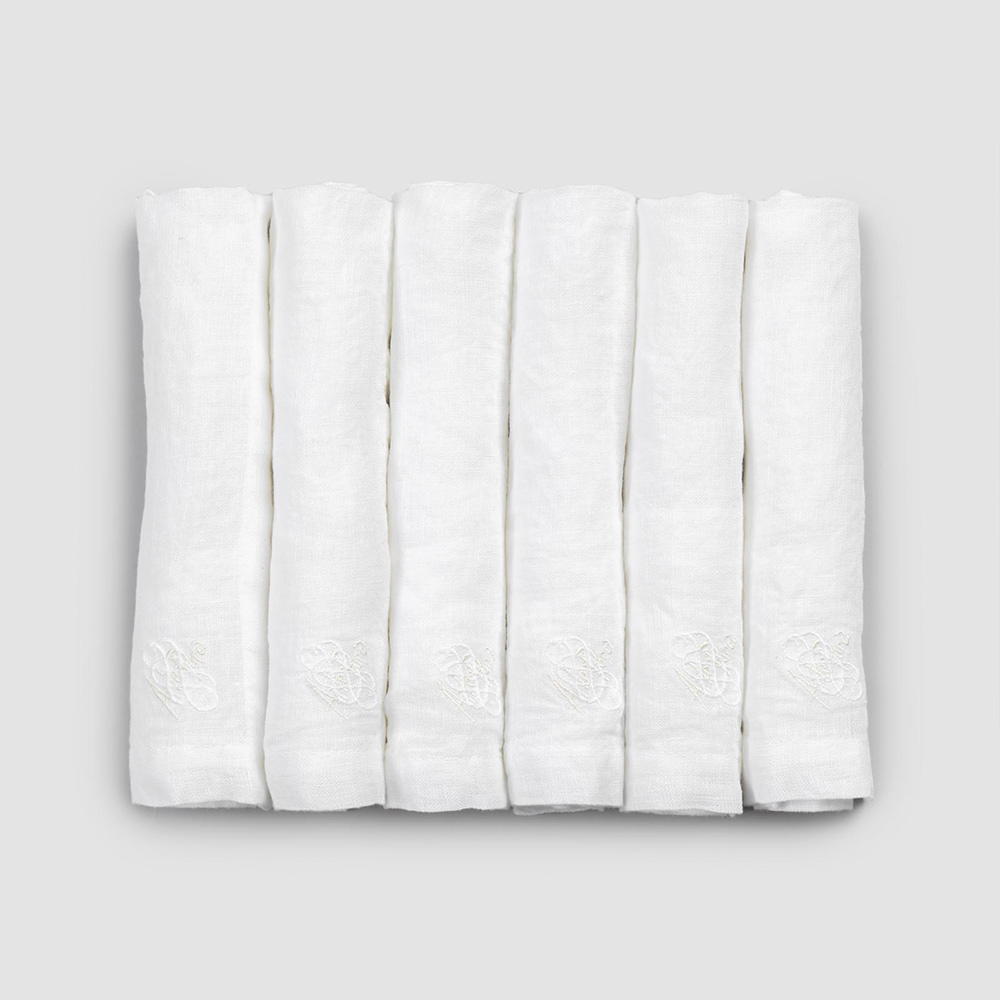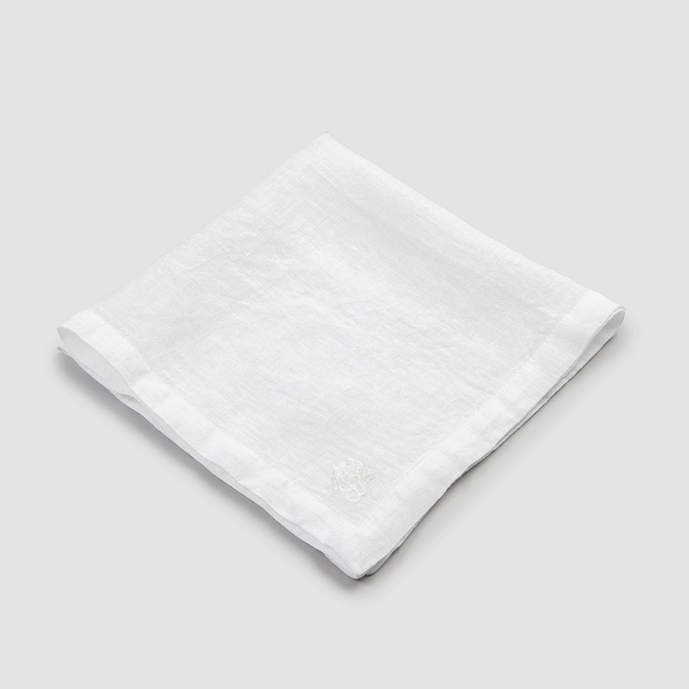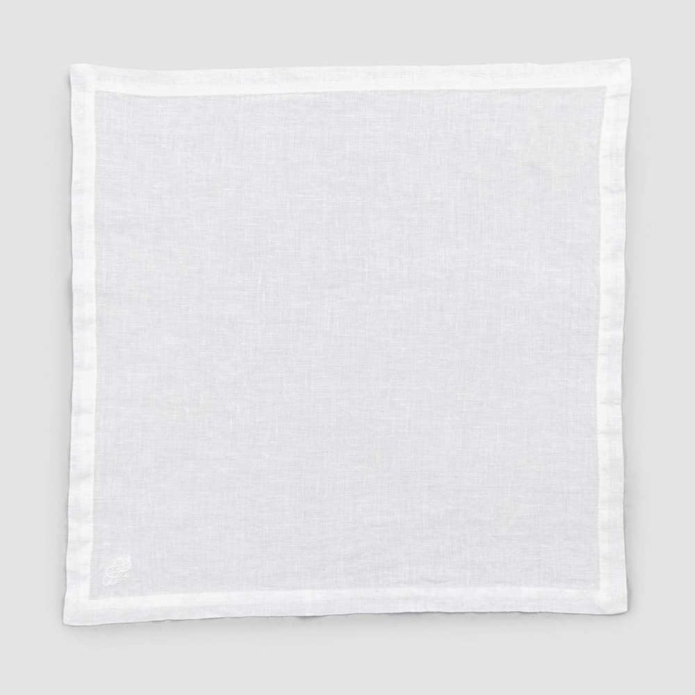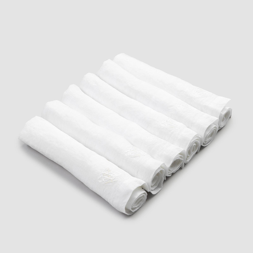 6 White light linen napkins with fold edge, luxury and elegant design made in Italy.