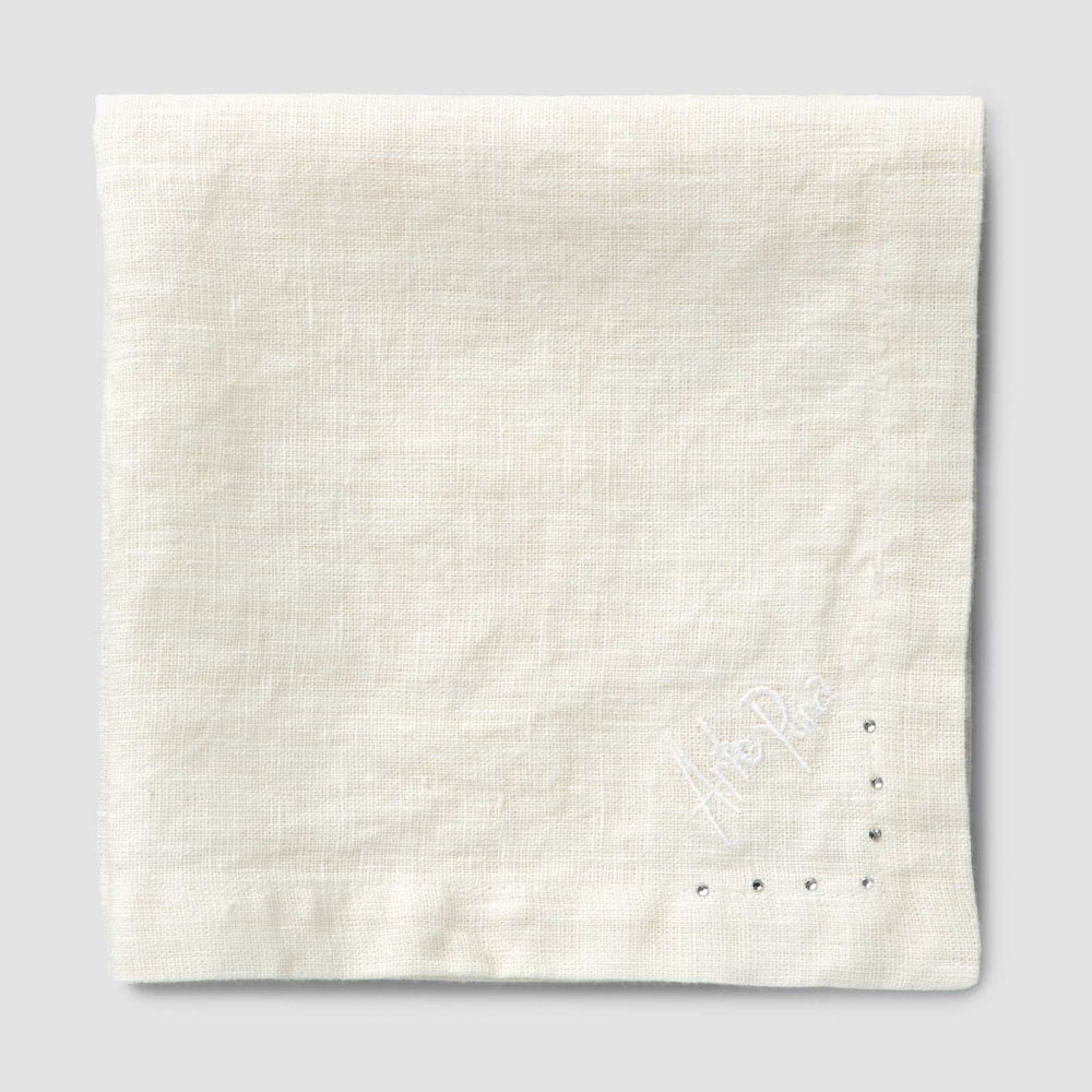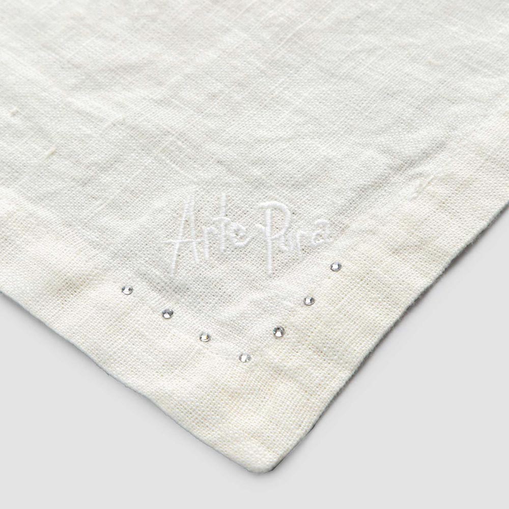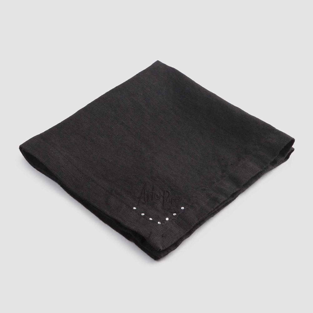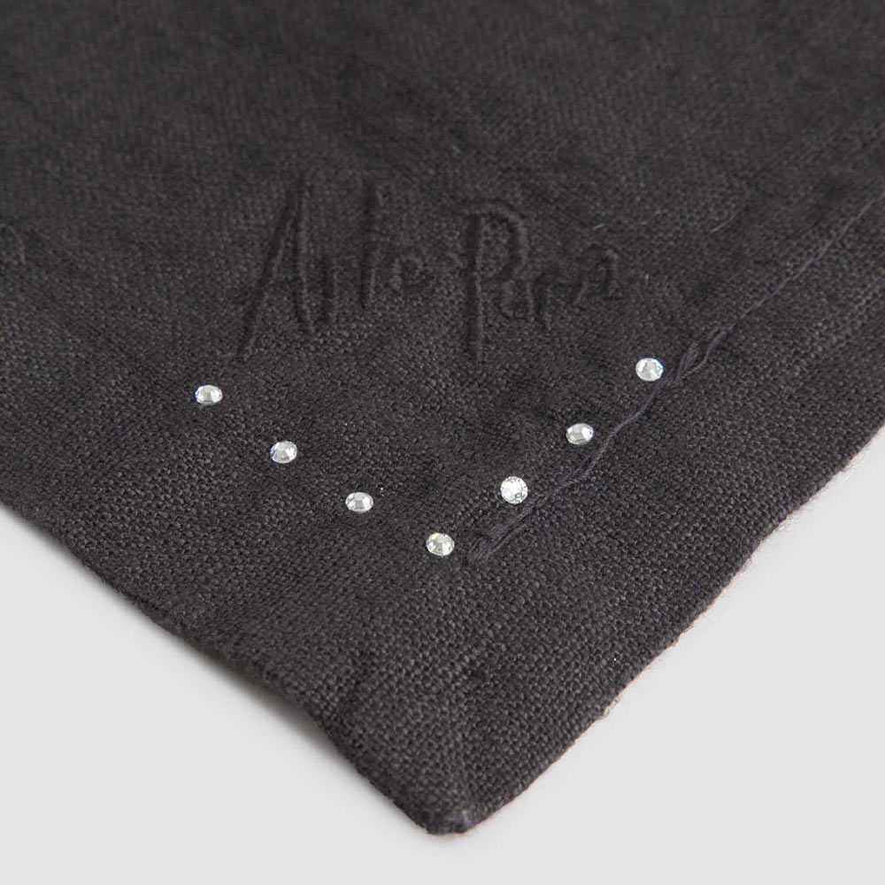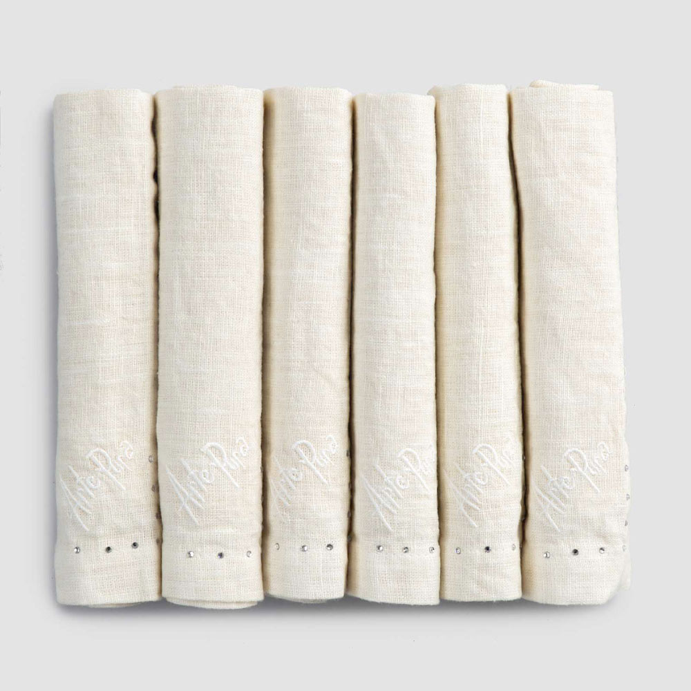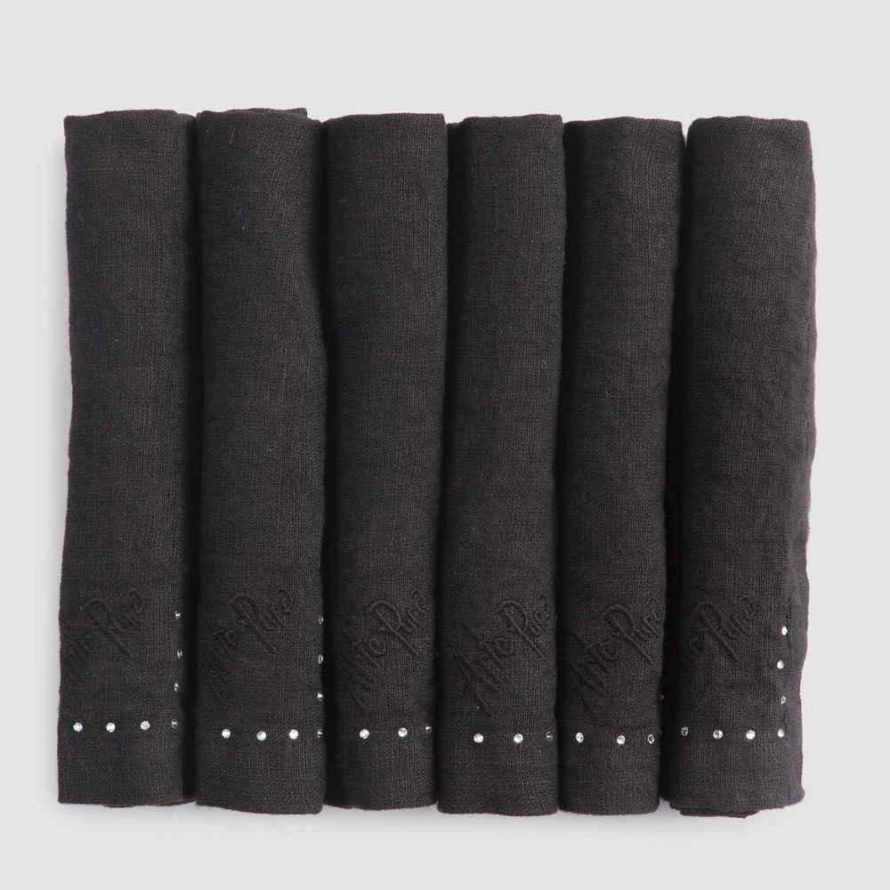 Napkin set in black linen or butter with crystals, 6 luxury pieces made in Italy.