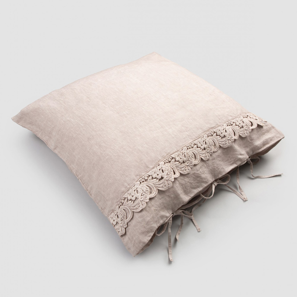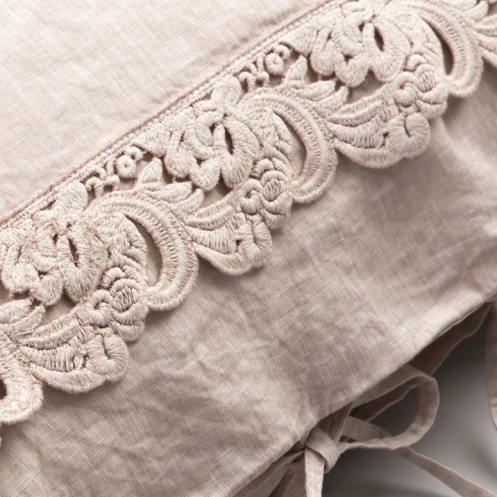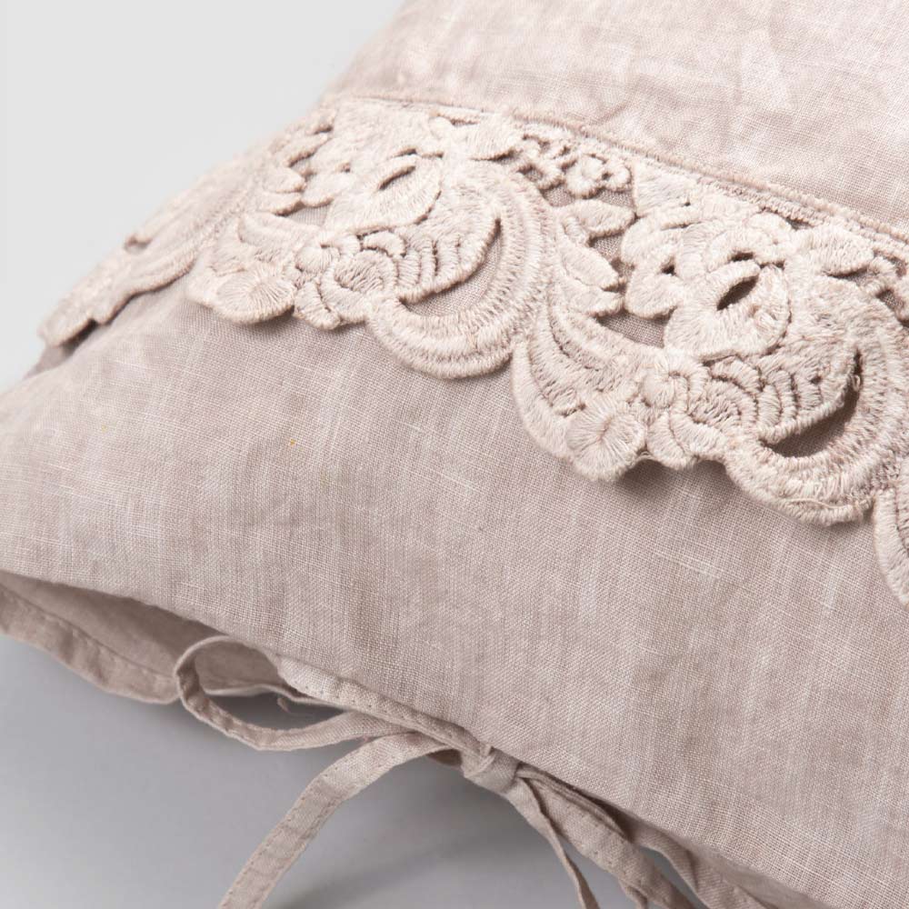 Square pillowcase in pure linen with harmony lace and buttons with laces, 2 colours made in Italy.