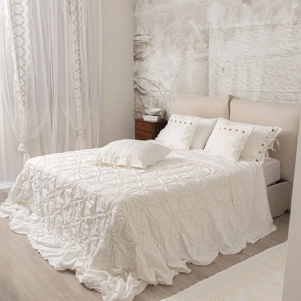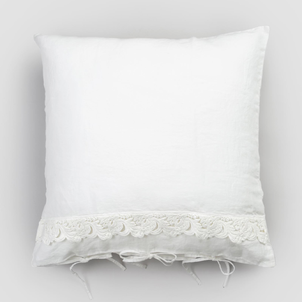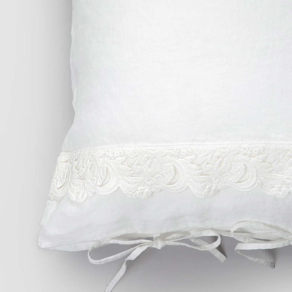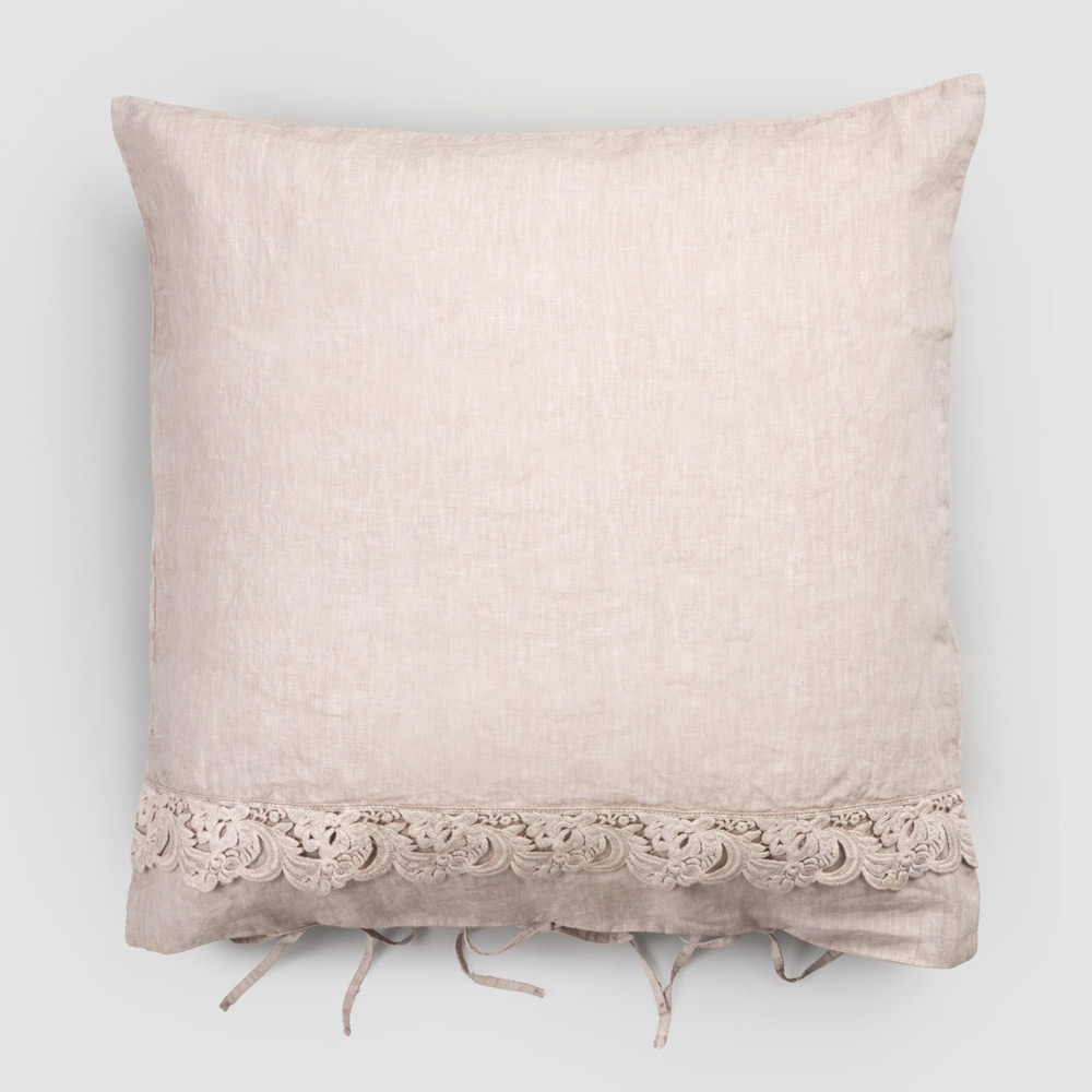 Square pillowcase in pure linen with harmony lace and buttons with laces, 2 colours made in Italy.