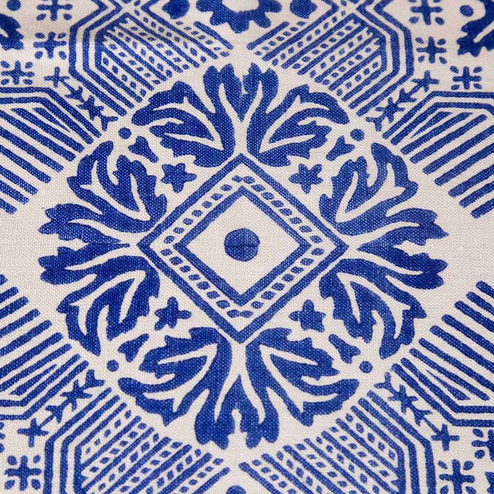 High Italian craftsmanship tablecloth in pure linen, entirely hand-printed in blue or rust with wooden moulds with an artistic design of the geometric star flower, an exclusive and quality unique piece, made in Italy.