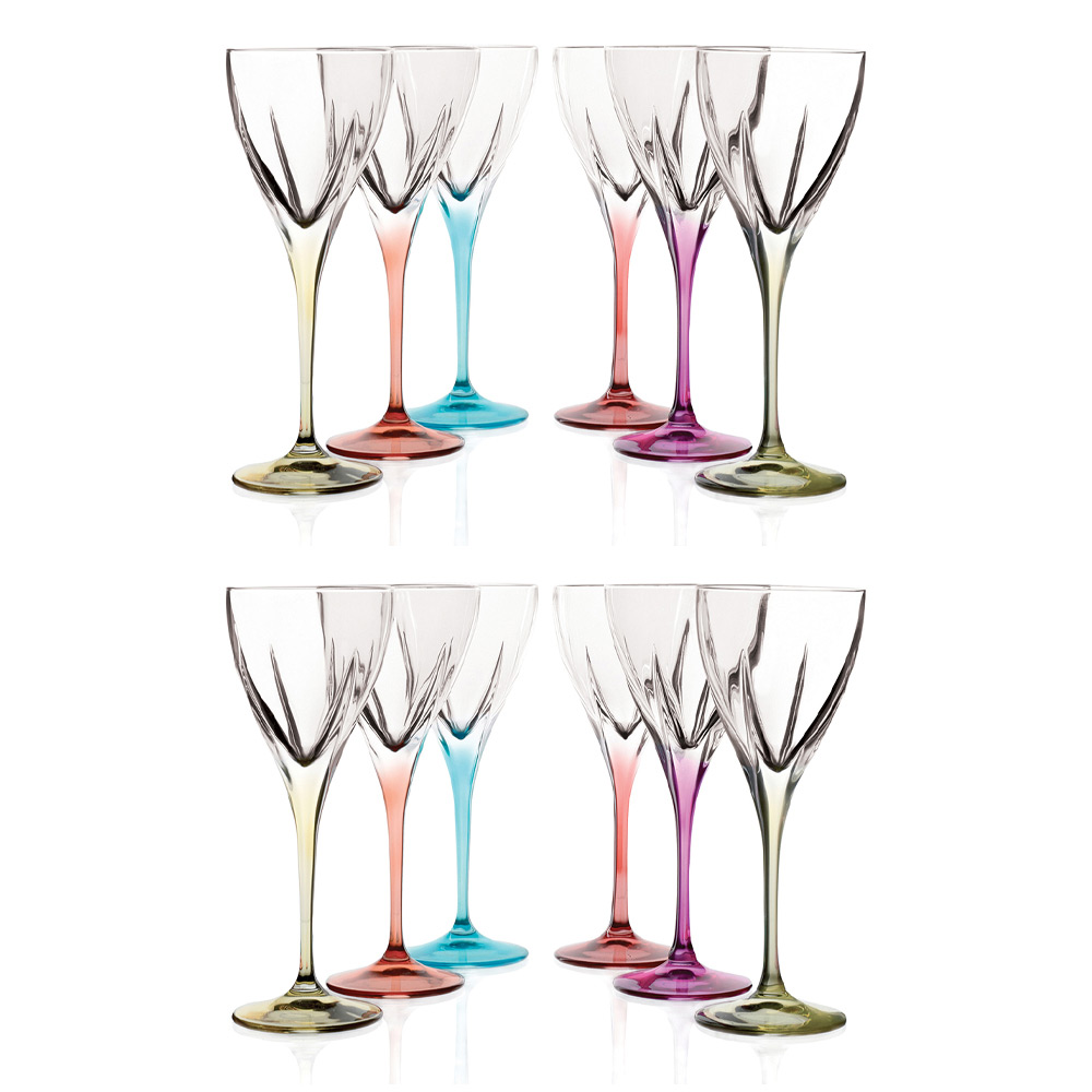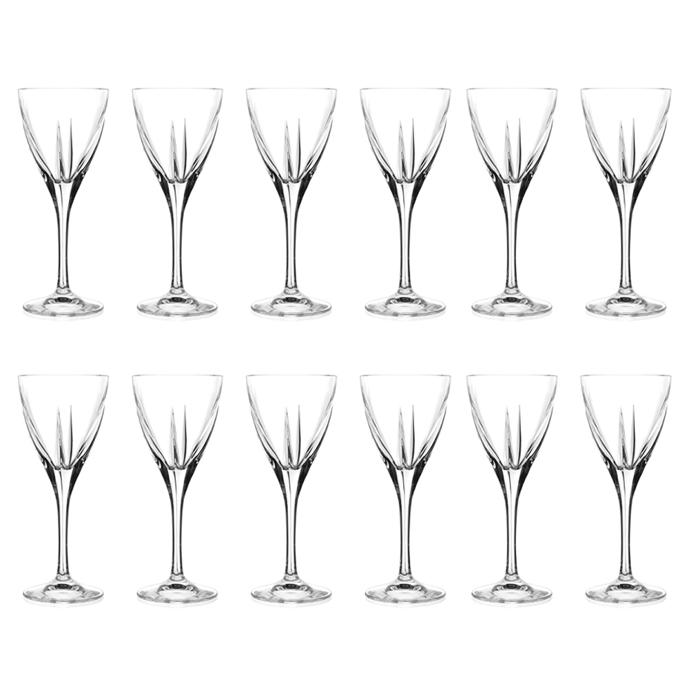 Set of liqueur glasses in transparent or colored eco crystal, 12 pieces made in Italy.