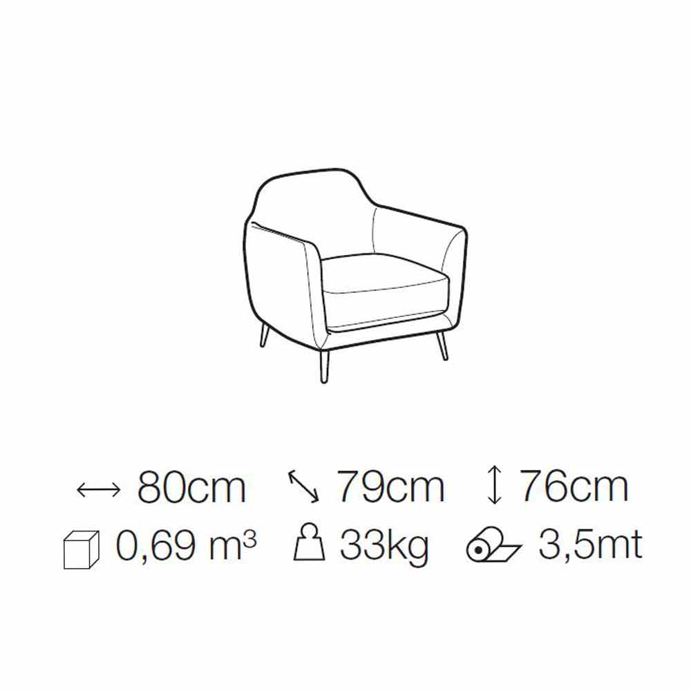 Living room armchair in fabric with metal feet Made in Italy, fine.