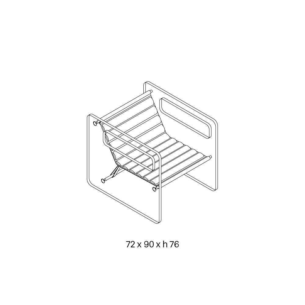 The structure is in fact composed of two sheets of tempered glass with two openings that become comfortable and practical armrests.