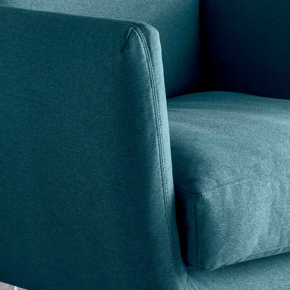 anthracite-coloured painted metal. The armchair represents a harmonious fusion of comfort and modern style. The elegant design with soft and rounded queues evokes a feeling of coziness, while the sturdy structure ensures durability over time. The high-quality fabric upholstery, together with the large and comfortable cushions, promises a relaxing seating experience. The thin and geometric feet add a sophisticated touch, making the armchair a fascinating piece of design. This armchair is ideal for those looking for a furnishing solution that combines modern aesthetics and impeccable comfort.