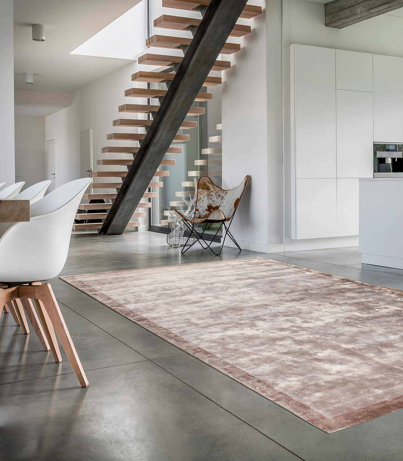 The peculiarity of this queue of carpets is the tone-on-tone edge which characterise each element and makes it precious and elegant.