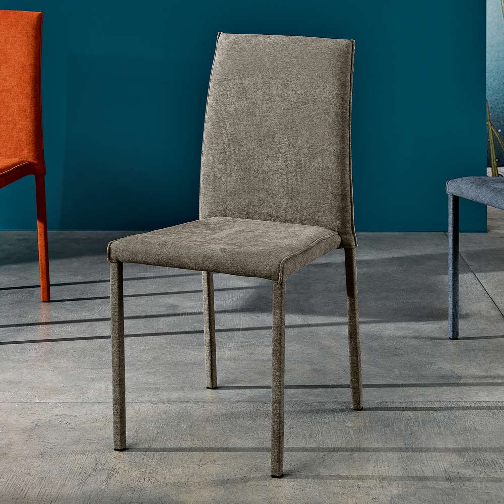 This chair is a masterpiece of minimalist elegance . Its quality fabric covering invites contact, offering a unique sensorial experience and unparalleled comfort. The shades of the fabric are versatile, capable of adding a touch of warmth to any environment, from modern to classic.