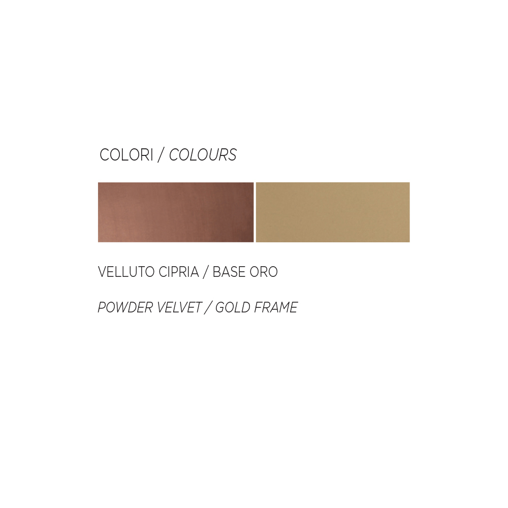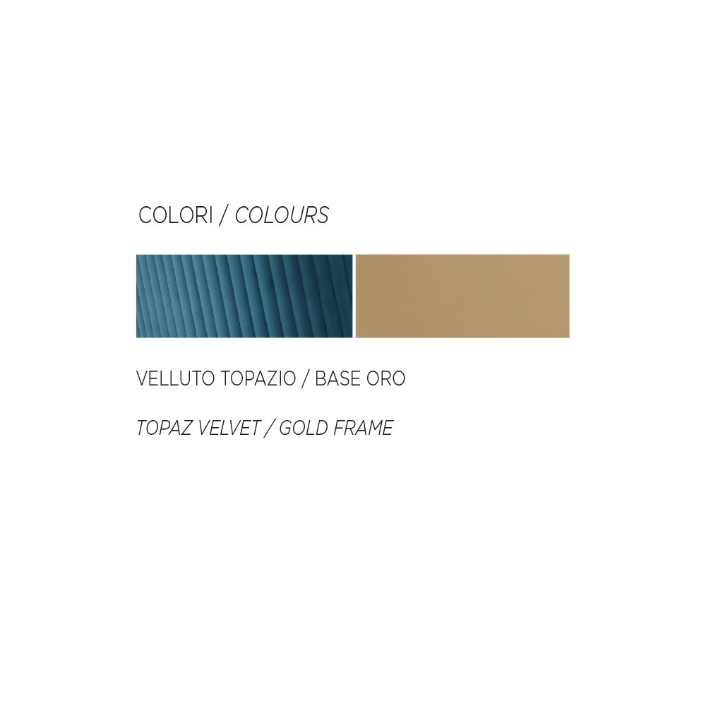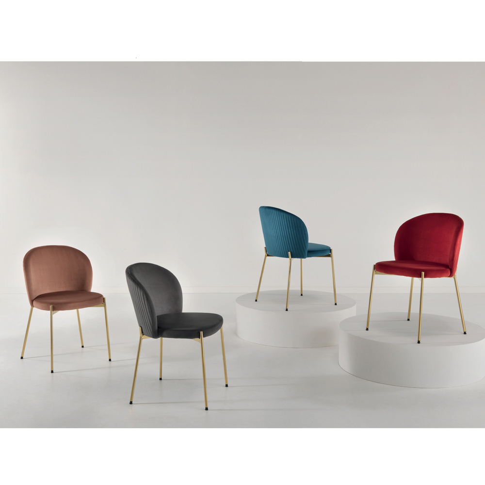 Living room chair with padded seat covered in velvet and golden metal structure. A piece of furniture with an essential style revisited in a contemporary key to bring an original seat to life through the combination of modern and innovative materials and colours . The result is a one-of-a-kind furnishing solution that blends functionality and versatility to furnish your home spaces with personality.