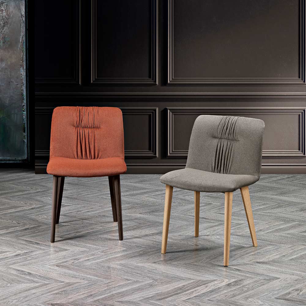 Transform your dining room into a more comfortable and elegant space with the modern monocoque chair with a seat covered in easy-to-clean crystal fabric and available in different colour variants: