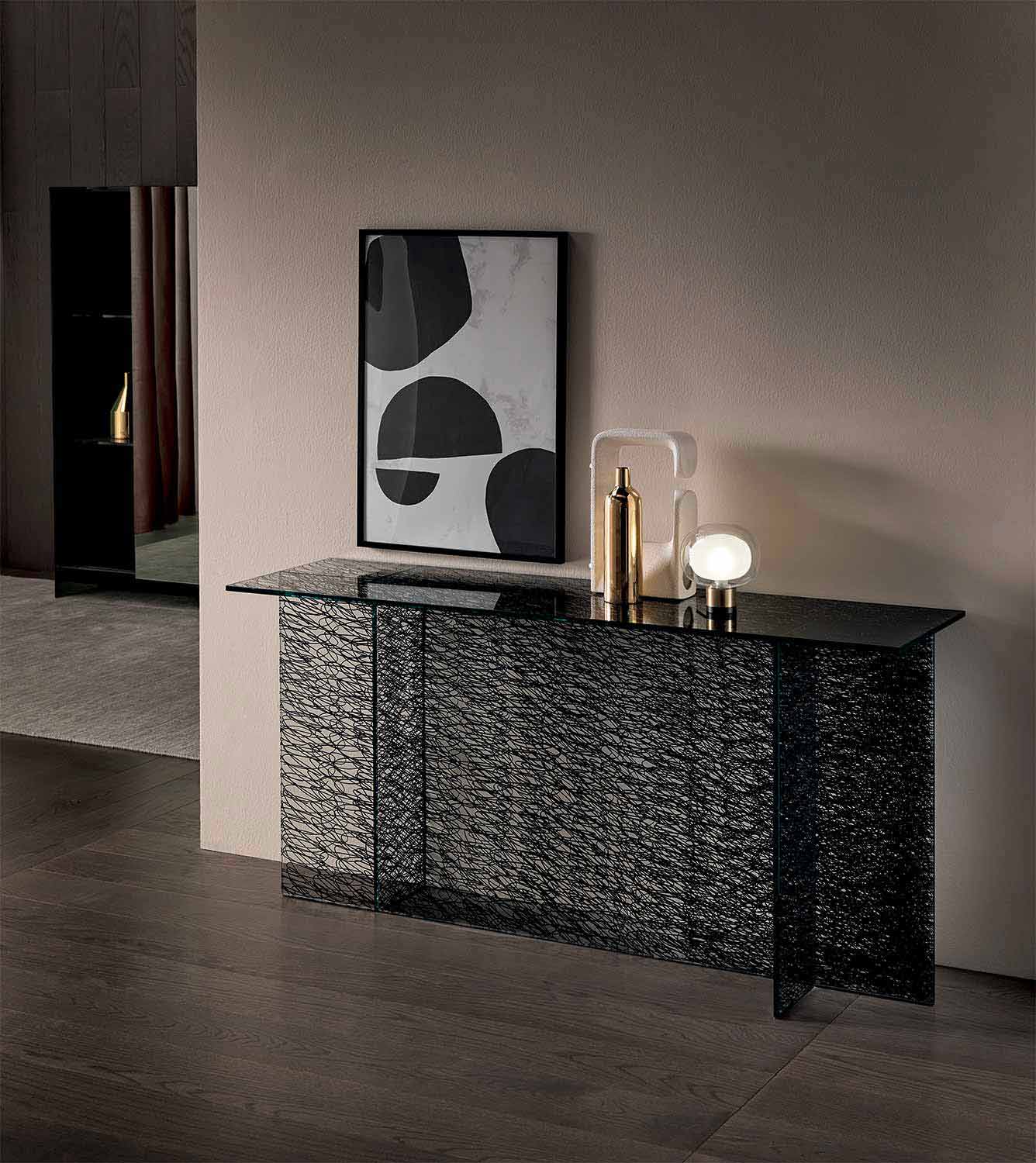 Design Entrance Consolle in Decorated Extraclear Glass Made in Italy - Sestola