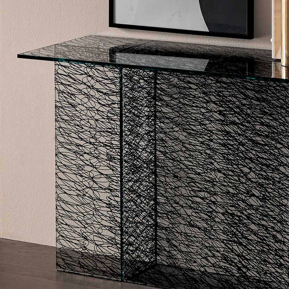 Modern design consolle in extraclear decorated glass, realized by hand in Italy.