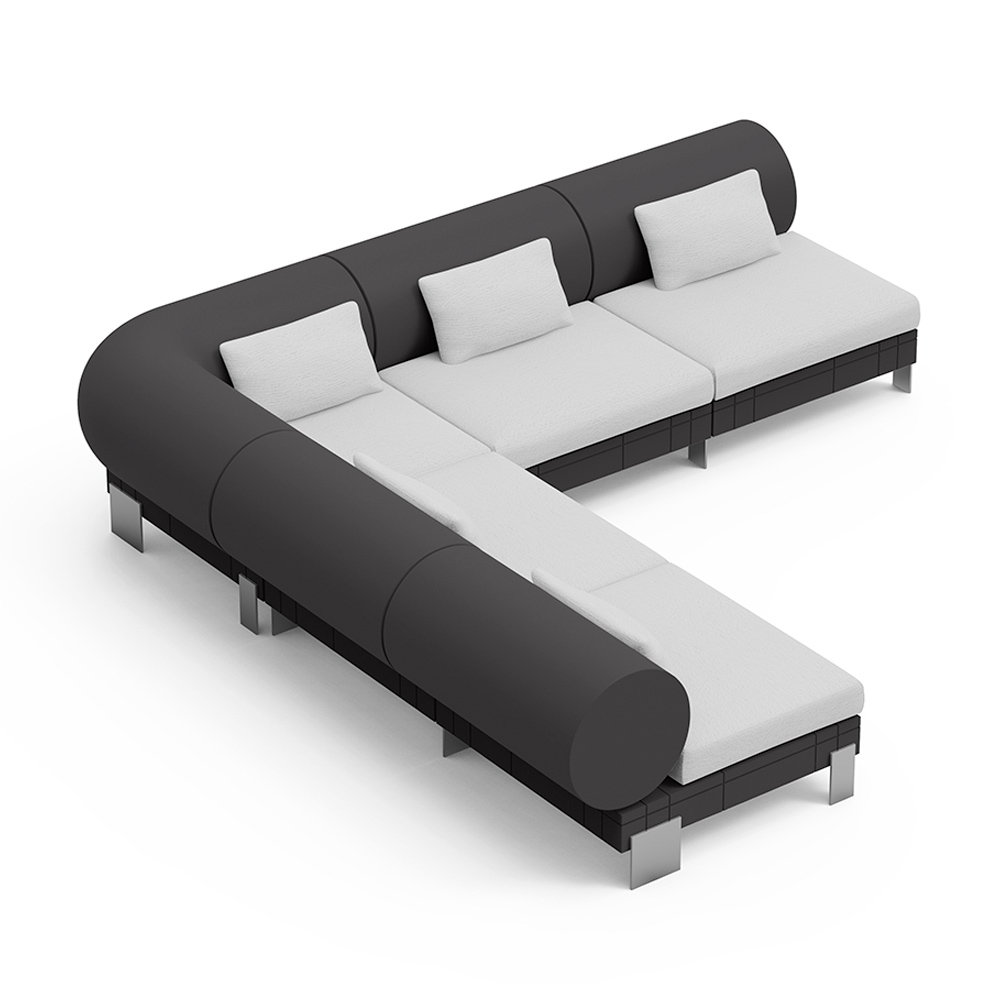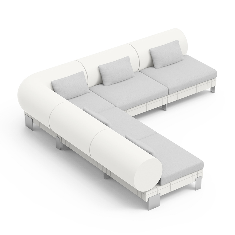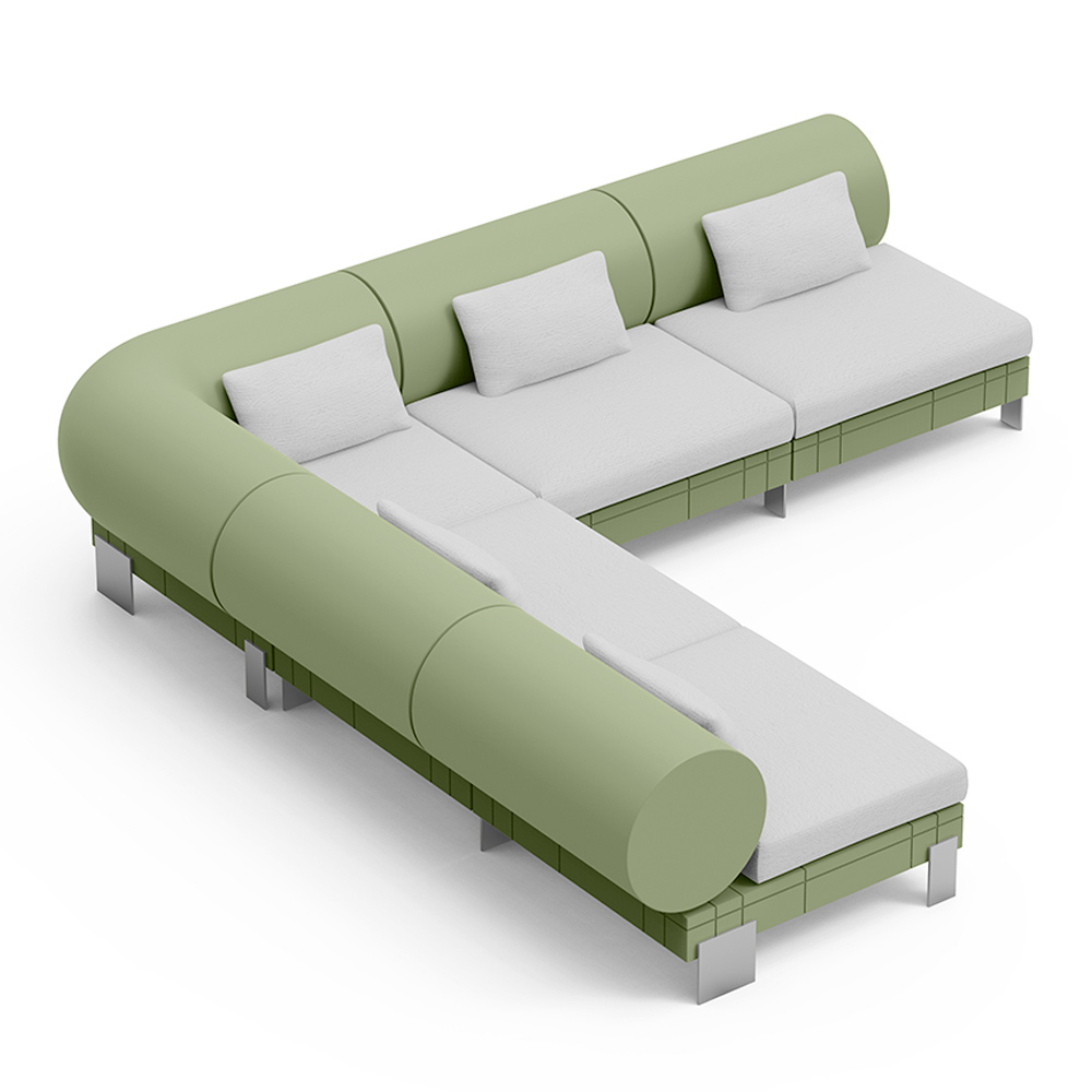 This contemporary sofa combines comfort and modern design in an attention-grabbing piece of furniture. Characterized by clean queues and an innovative shape with lateral cylinders, the sofa offers a touch of unique and functional style . Its colour palette introduces an element of brightness and freshness into every living space.