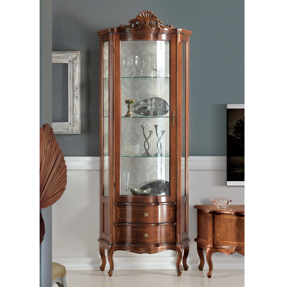 Lounge Display Cabinet 1 Door and 2 Wooden Drawers Made in Italy - Leonor