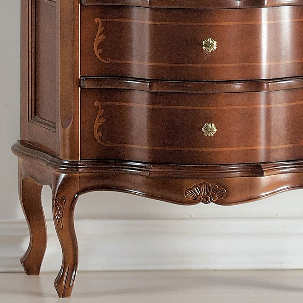 Living room display cabinet made of inlaid walnut finish wood , with door and 2 drawers, perfect for elegantly furnishing the living area. Available in the version with door that can be opened to the right or to the left.