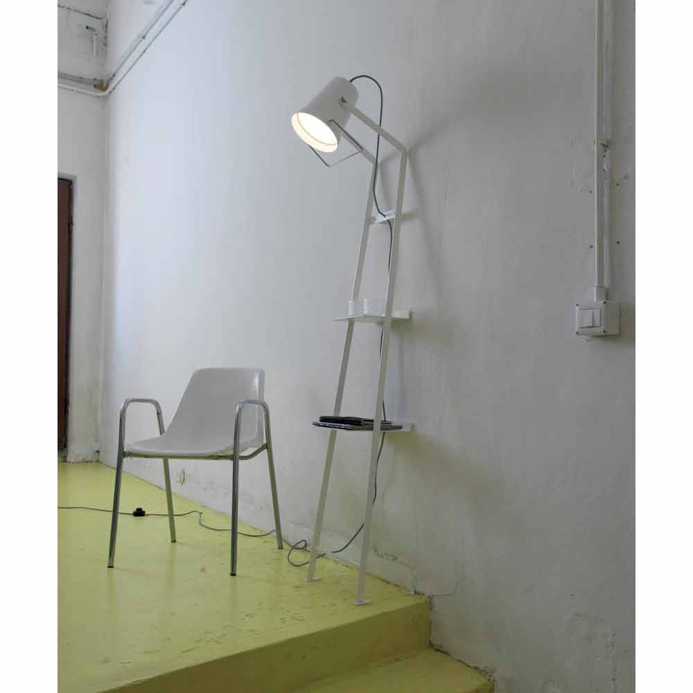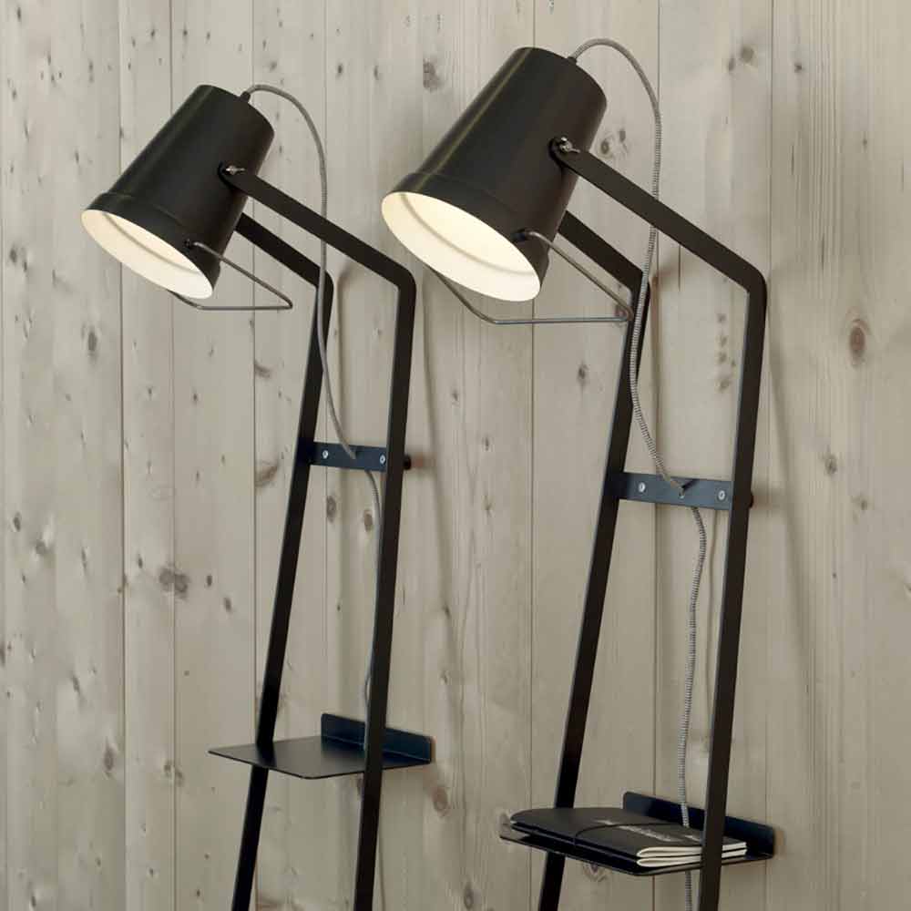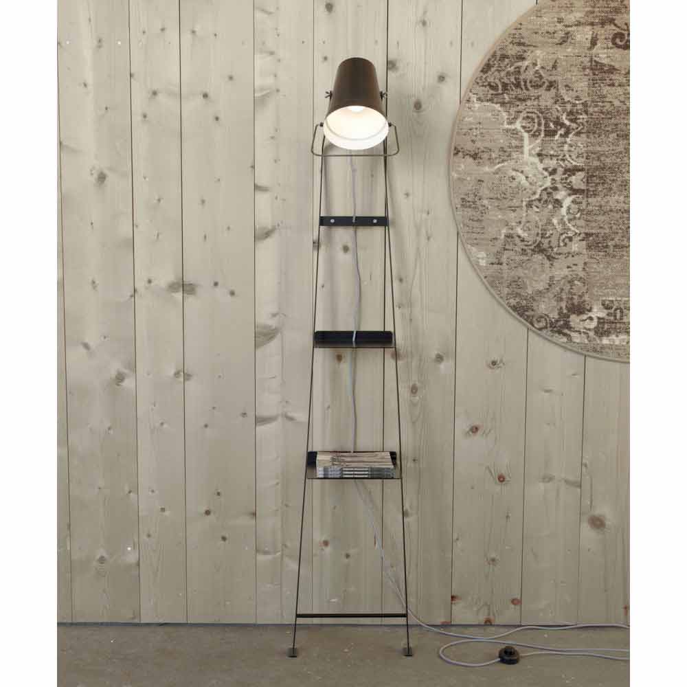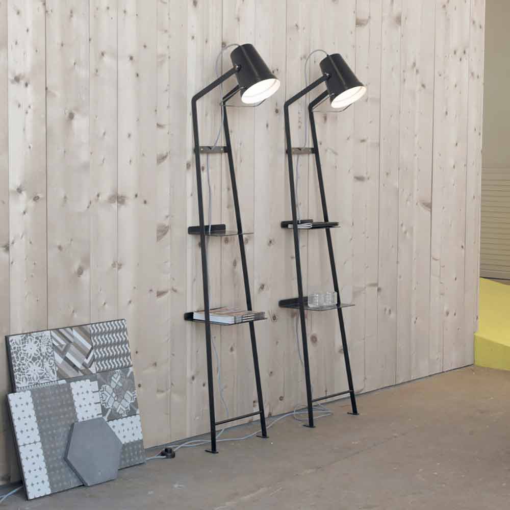 This original and unique floor lamp acts as a butler with its wall silhouette that allows you to direct the light in the room directly or indirectly and its practical shelves , for a functional design in the lounge. This is how the luminous totem fits into different contexts to bring style and efficiency.