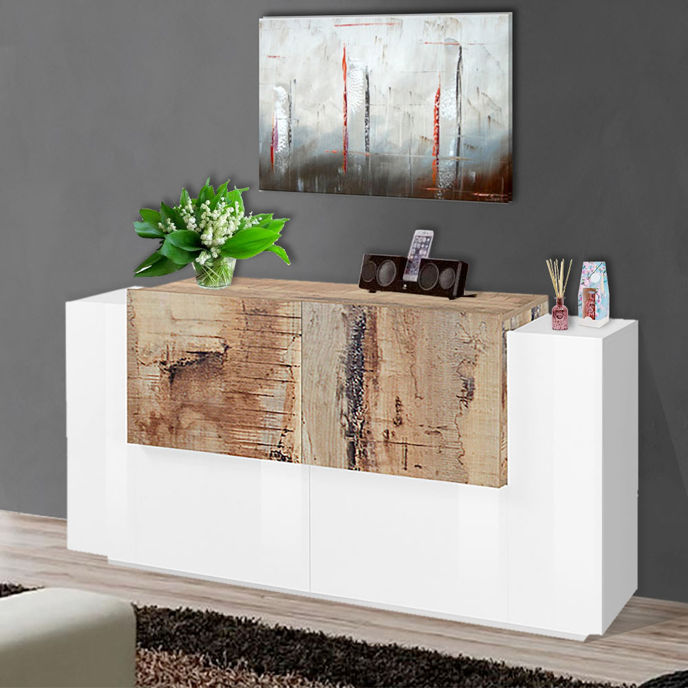 Madia 2+2 doors in glossy white wood and maple or slate, made in Italy.