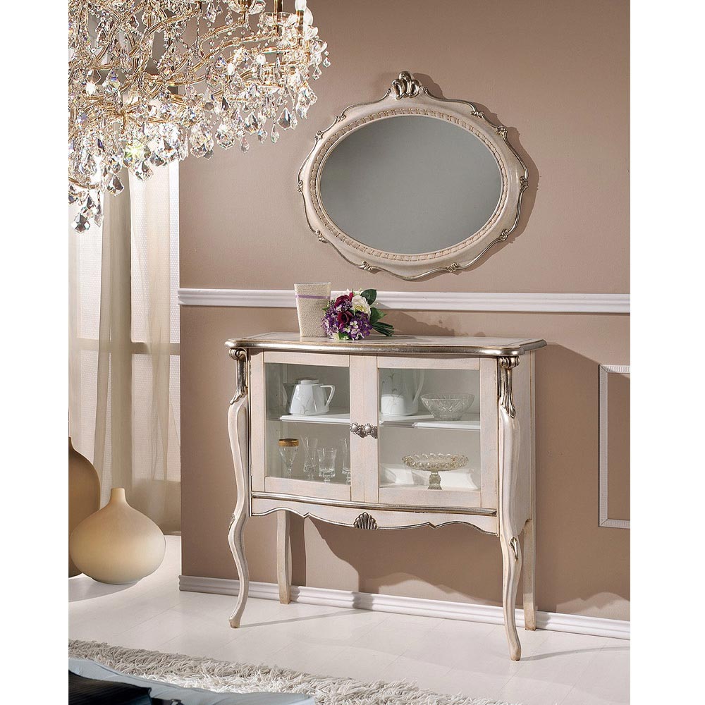 living room display cabinet made of wood and complete with 2 elegant glass doors, ideal for decorating your lounge with timeless elegance. Available in two variants: