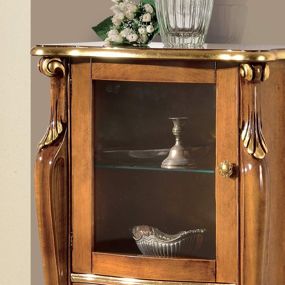 Living room display cabinet with glass door and 3 drawers Made in Italy.