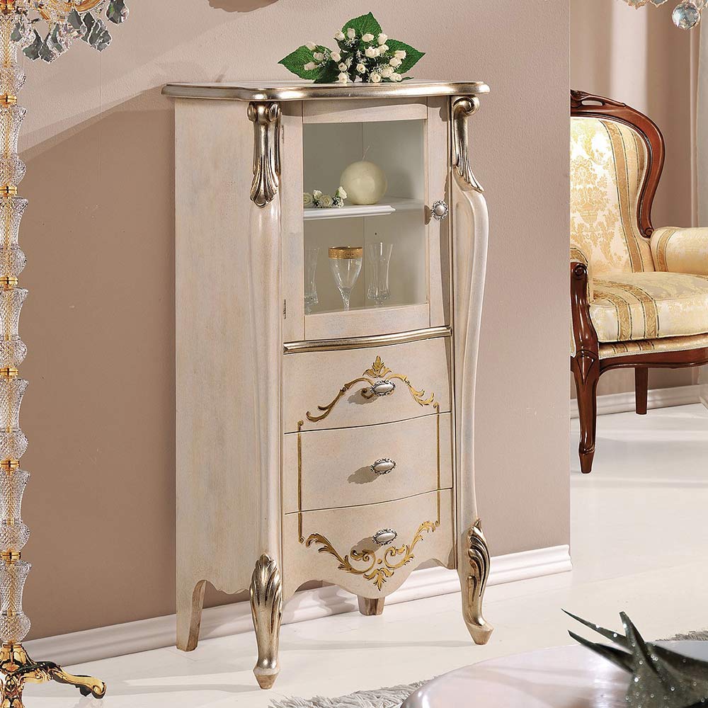 glass door and 3 practical drawers designed to furnish your lounge with timeless elegance. Available in two variants: