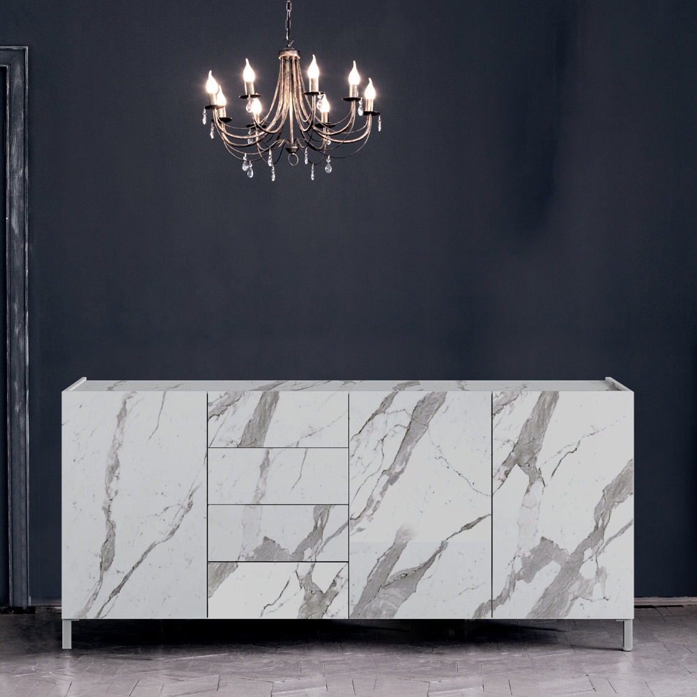 great resistance and quality. Available finishes:- melamine finish in matt Calacatta White Marble