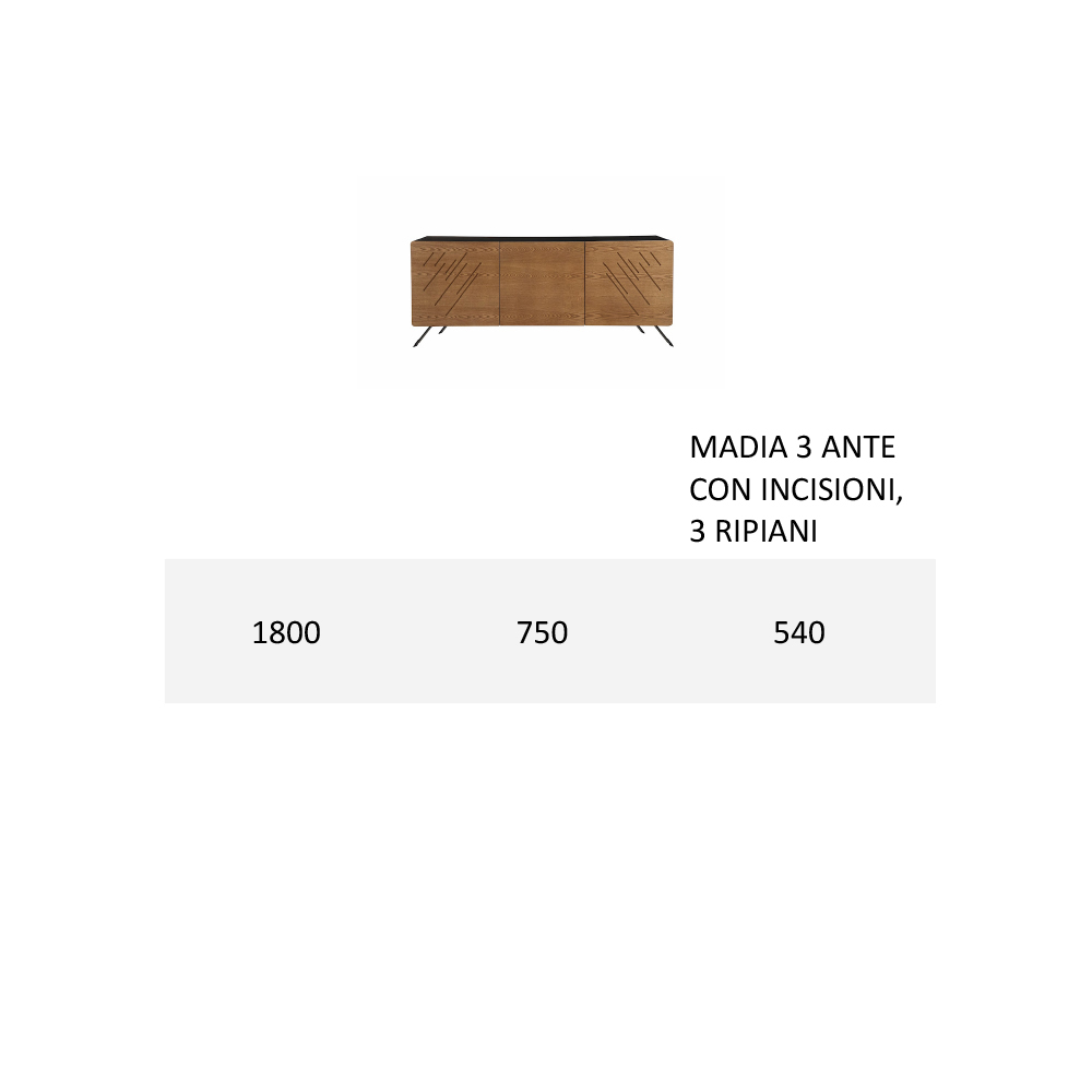 - L 180 x P 54 x H 75 cm (3 doors);