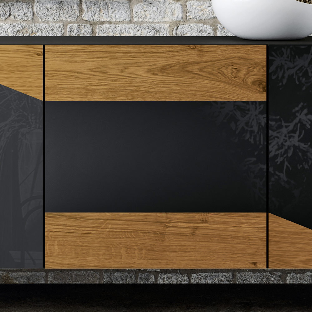 country knotted oak inserts , entirely Made in Italy . The product is part of the new queue of modern products made with respect for nature. This elegant sideboard is characterized by the functionality and high quality of Italian craftsmanship.