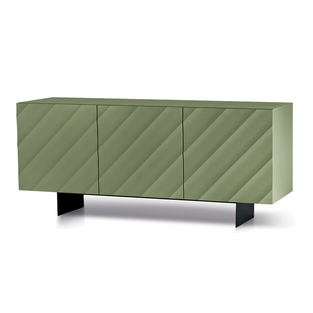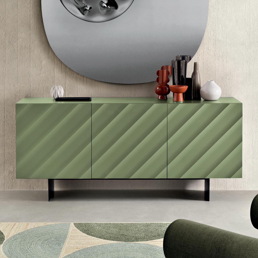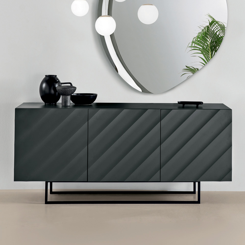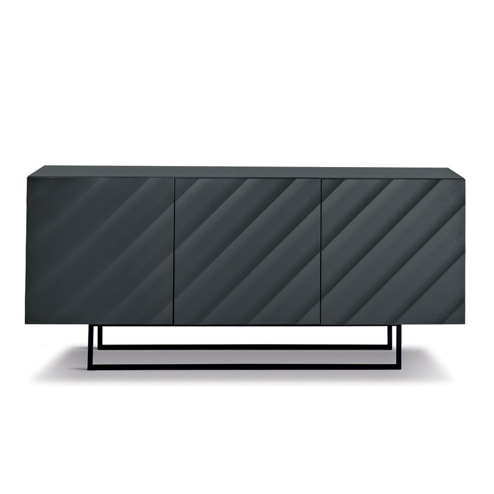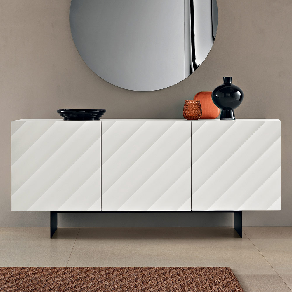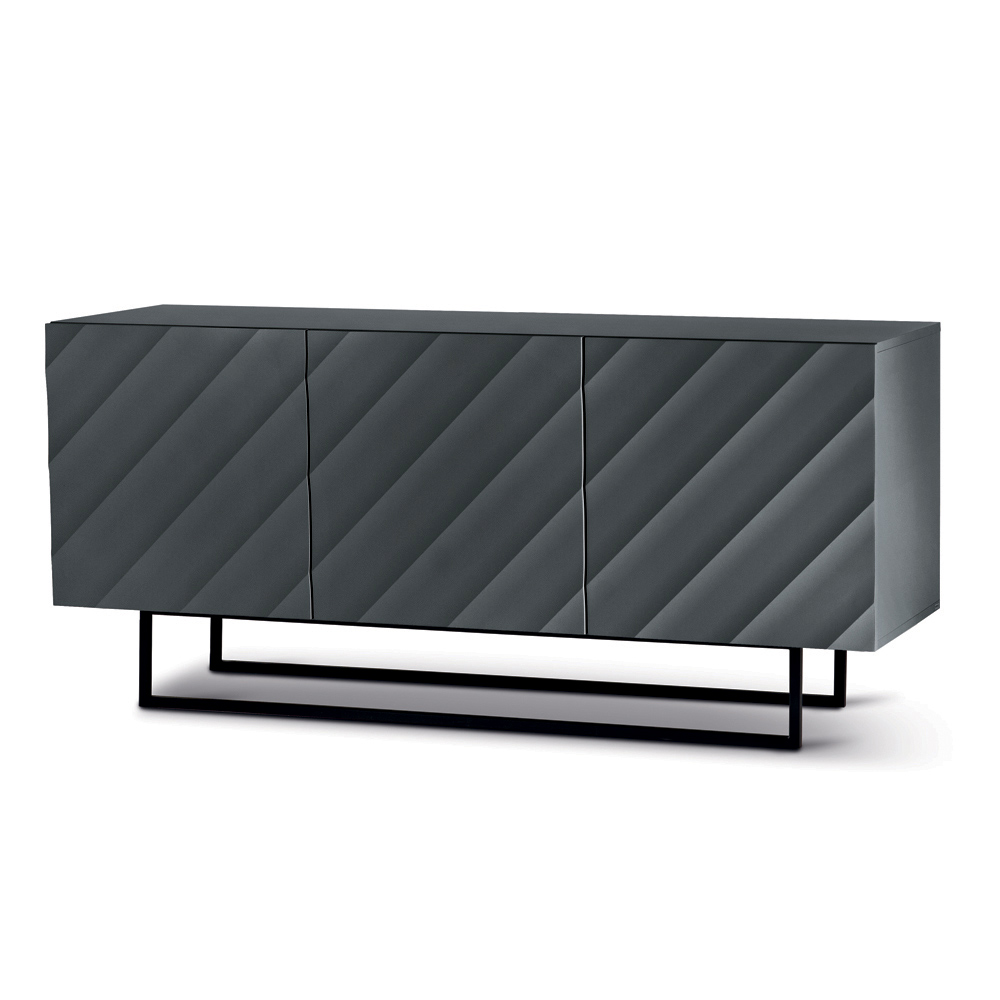 Made in Italy designer sideboard with embossed geometric doors and metal base