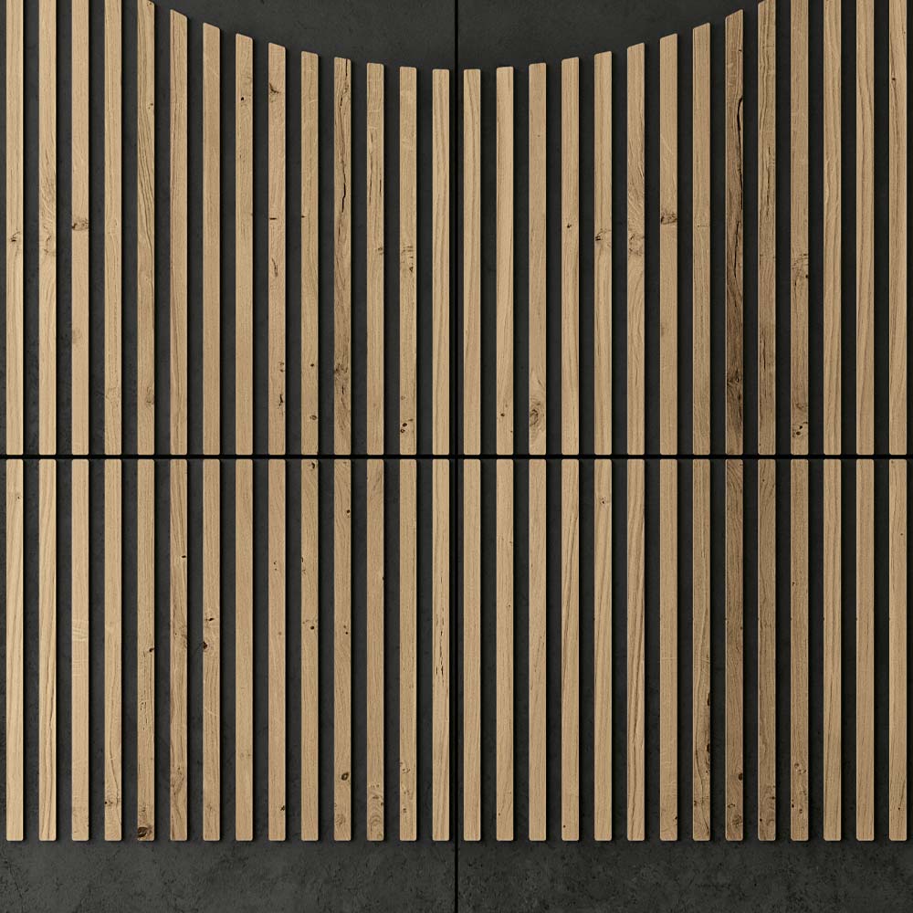 body, internal shelves and doors in MDF with charcoal and knotted oak finish, back in plywood and