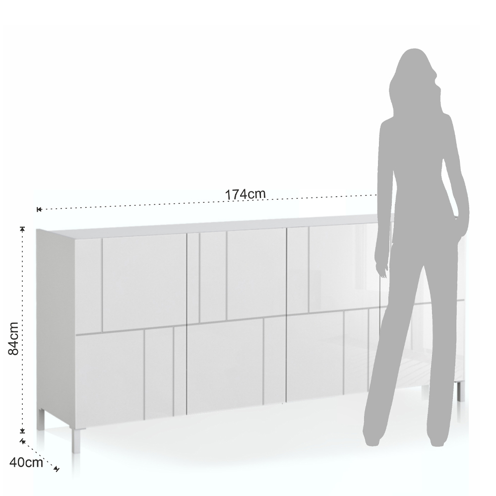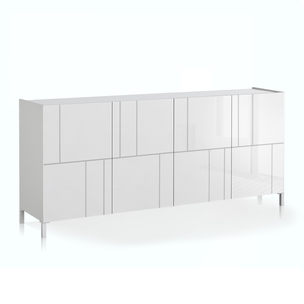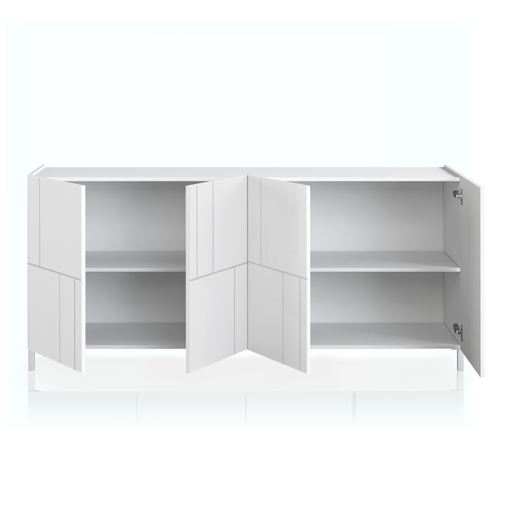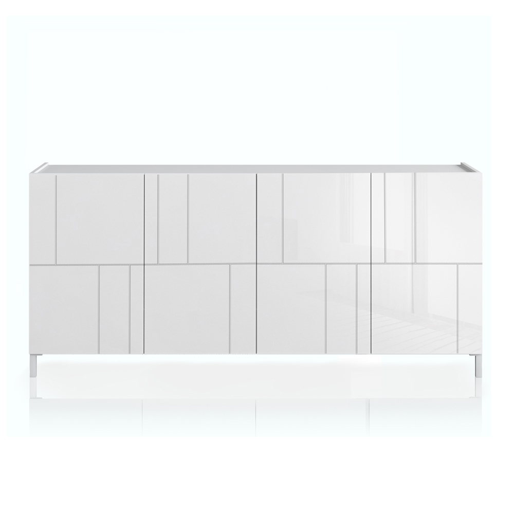 Wooden lounge sideboard with 4 silk-screened hinged doors