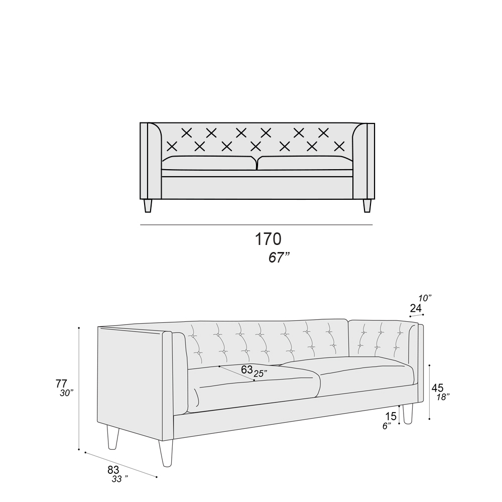 Available sizes:- length: 170 x depth: 83 x height: 77 cm