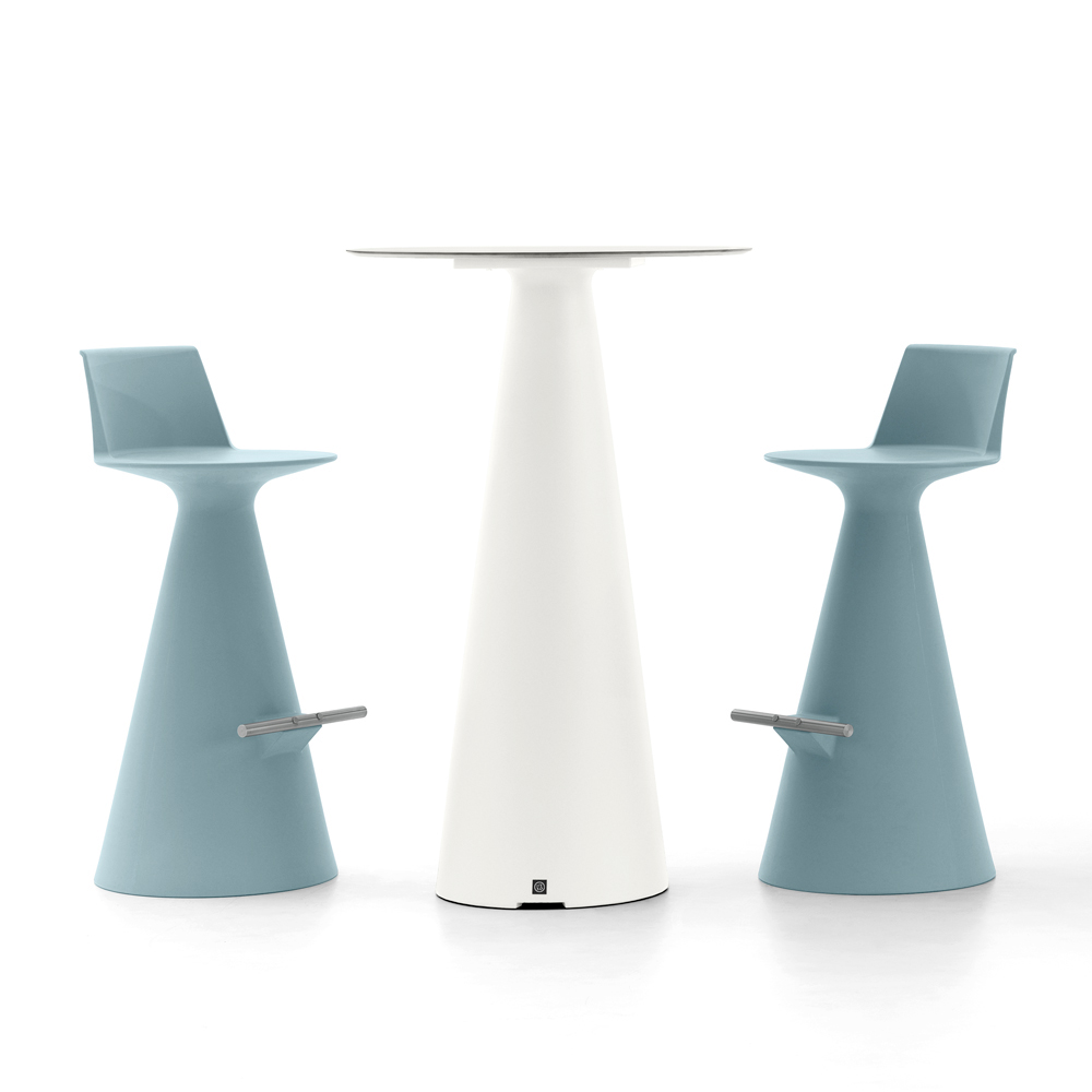 This modern stool stands out for its unique and innovative design, combining form and function in a way that is both aesthetically pleasing and practical. The conical base expands upward into a comfortable seat, with a back support that offers a relaxing and ergonomic seat .