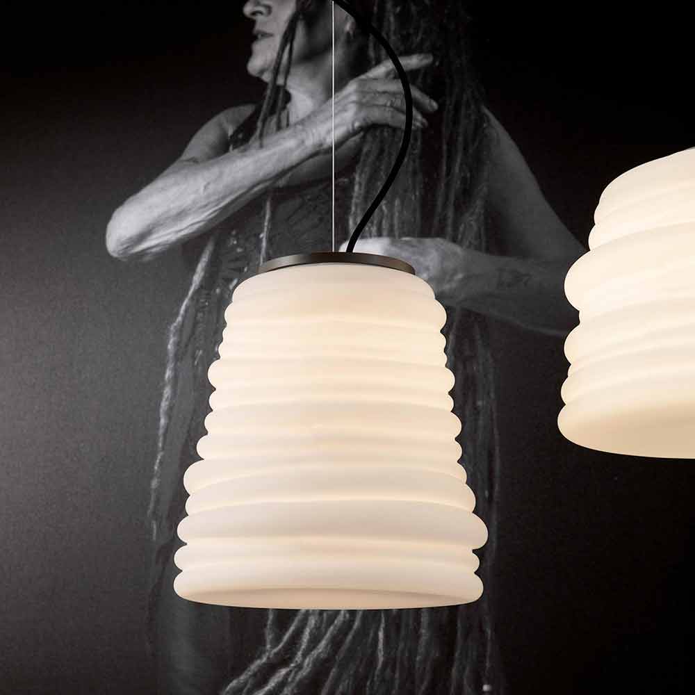 The lamp is made with a satin white glass lampshade for an entirely Italian design which, through unconventional experimentation and continuous research between tradition and modernity , is able to amaze, dare and excite, allowing you to express your emotions through an original and personal decorative use of light.