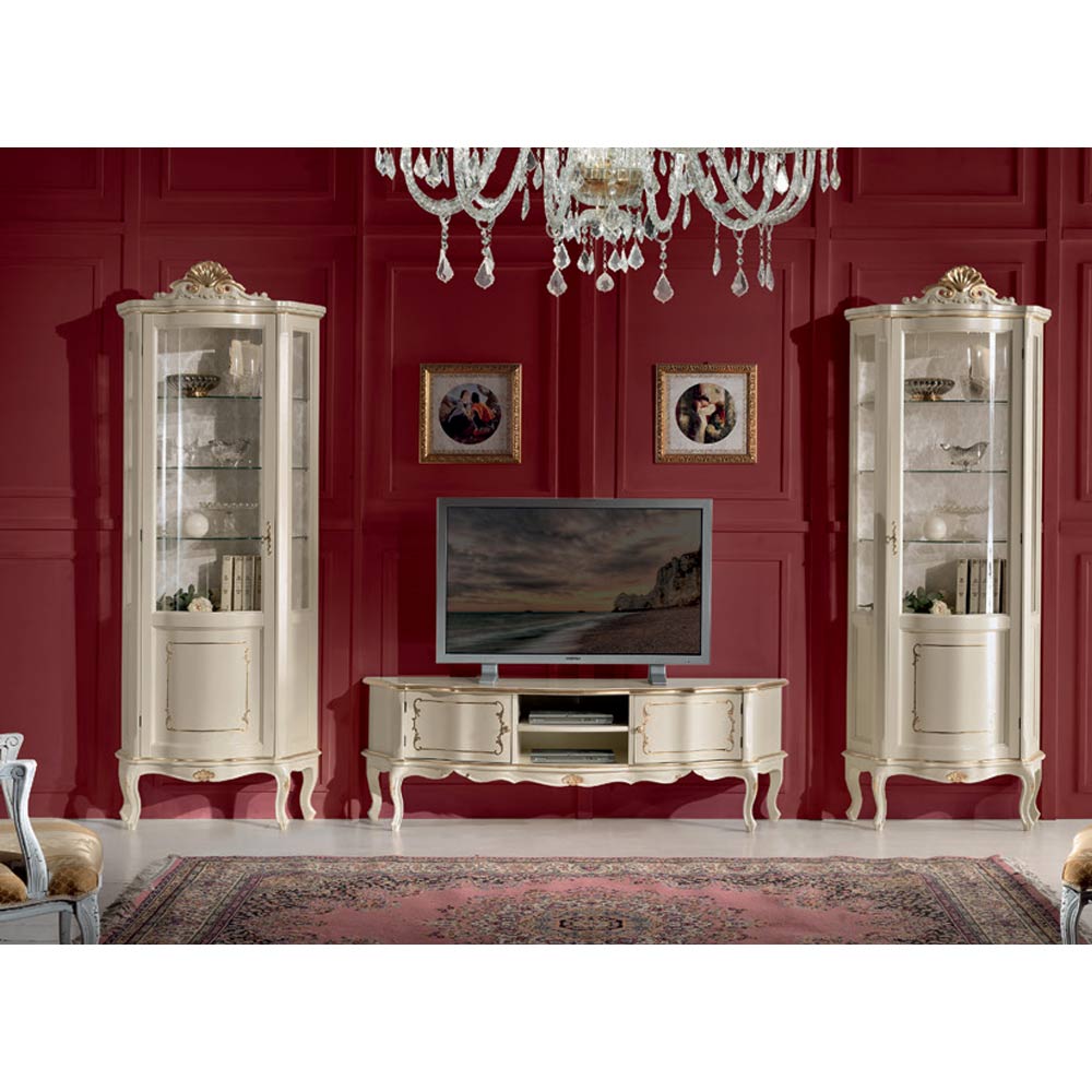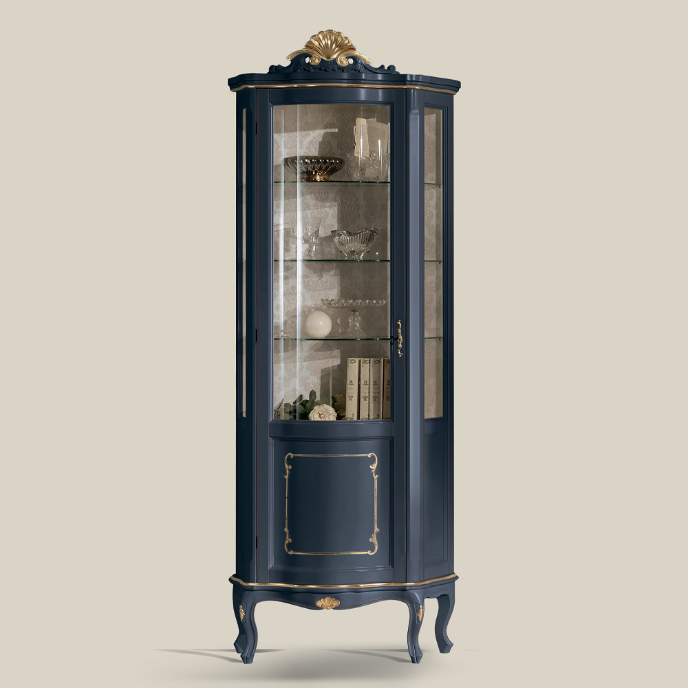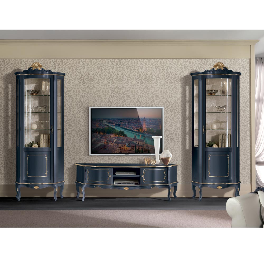 Wooden lounge display cabinet with luxury Made in Italy door.