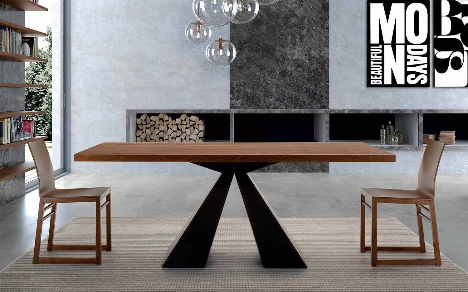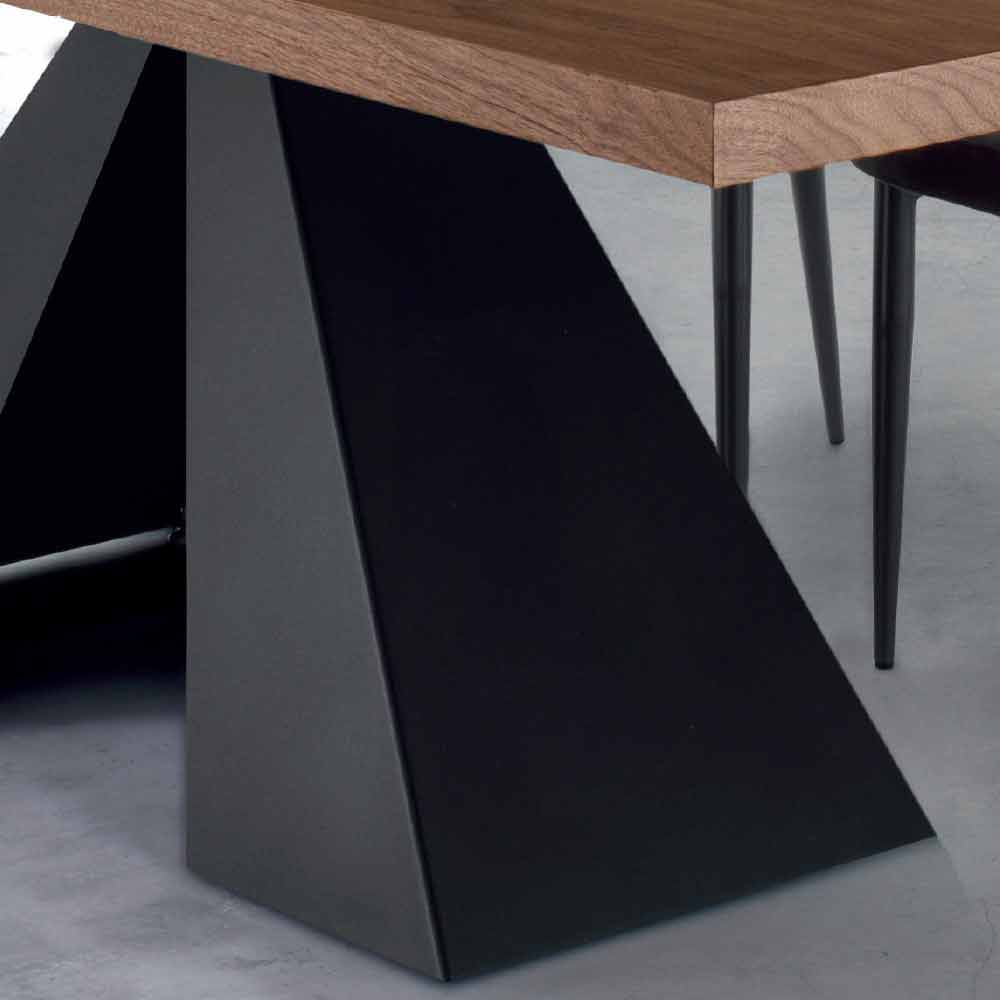 Designer kitchen table in walnut veneered wood and black steel base made in Italy.