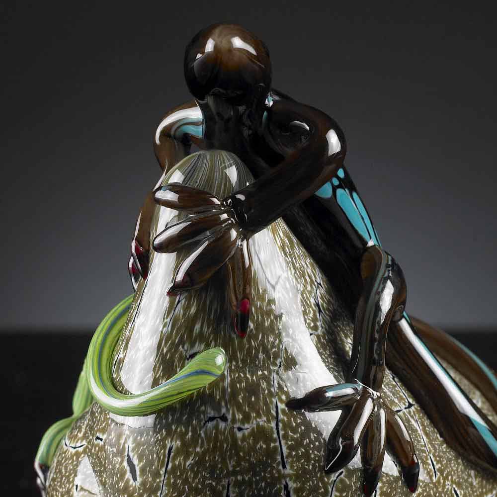 Statue in the shape of lizards on a stone in colored glass made in Italy, luxury.