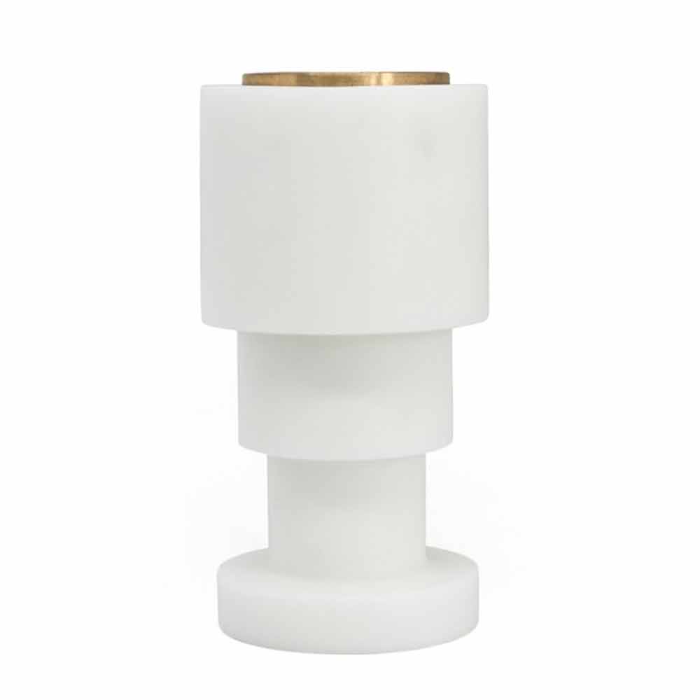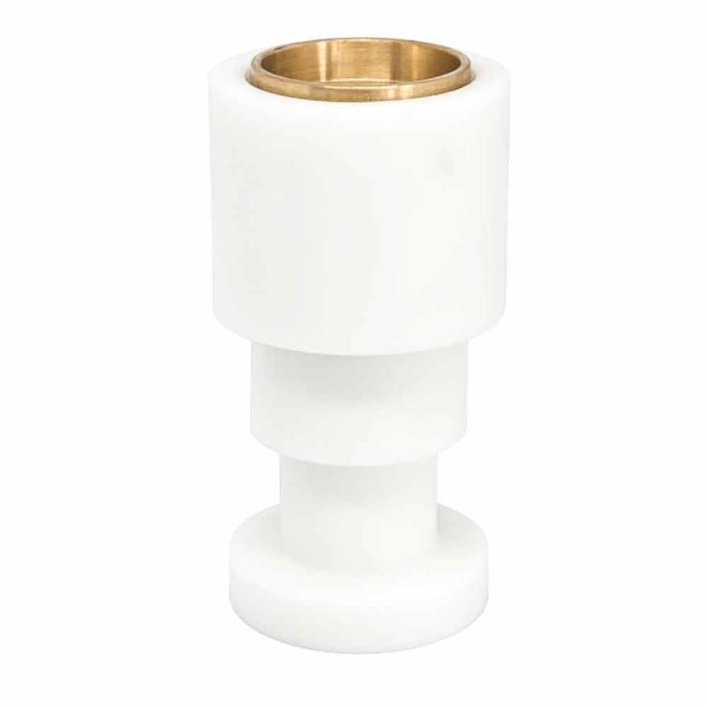 Low candle holder made of high quality white Carrara marble and brass . It is a unique piece as each block of marble used differs from the others for veins and shades. The marble comes from the Poggio Silvestre quarry which is a source of first quality white marble classified since the last century.