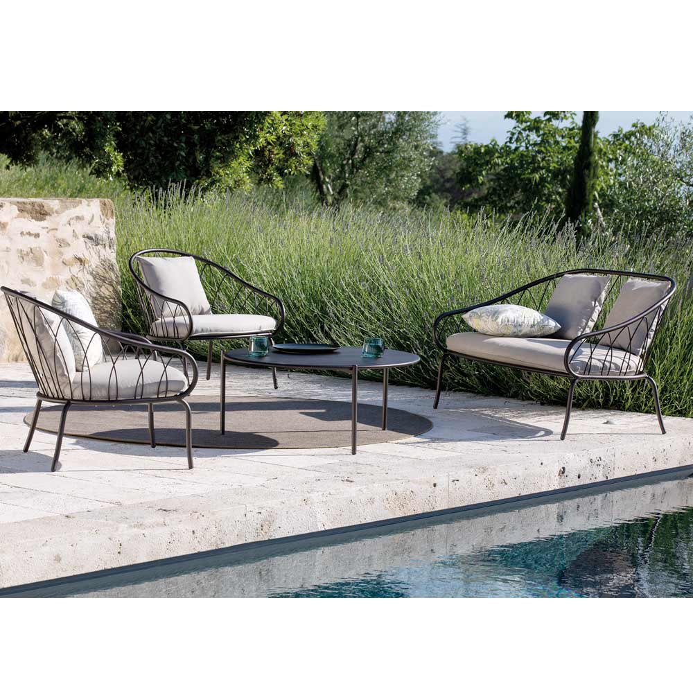 Low garden armchair with powder-coated galvanized iron structure and fabric seat Made in Italy
