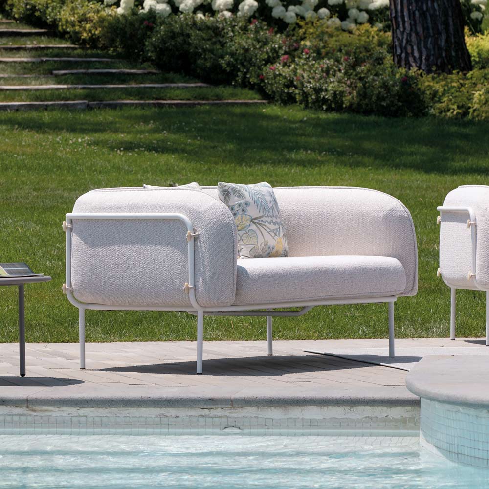 Outdoor armchair made with powder-coated galvanized iron structure and fabric seat , entirely Made in Italy.