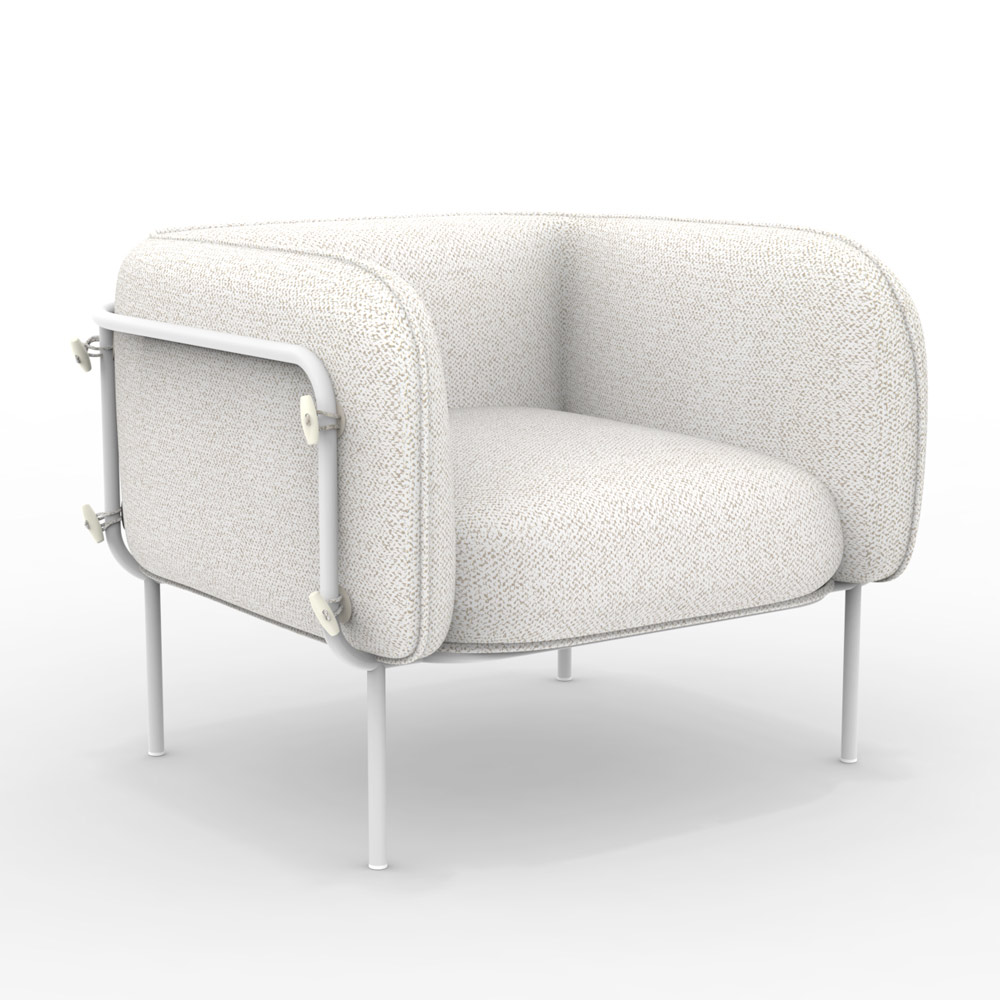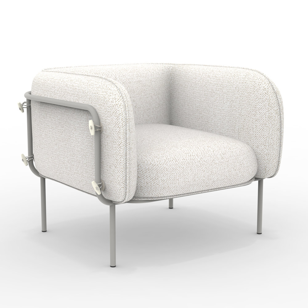 Discover the perfect combination of design and relaxation with this clean-lined garden chair. With its powder-coated galvanized iron frame, this seat adds a touch of minimalist elegance to any outdoor space . The waterproof and UV-resistant fabric envelops soft padding that invites moments of true relaxation. The available fabric finishes blend harmoniously with their surroundings, reflecting the sunlight and helping to create an atmosphere of serenity and style. Placed next to a sparkling pool or in a green corner of the garden, this chair is a promise of long-lasting comfort and beauty that defies time.