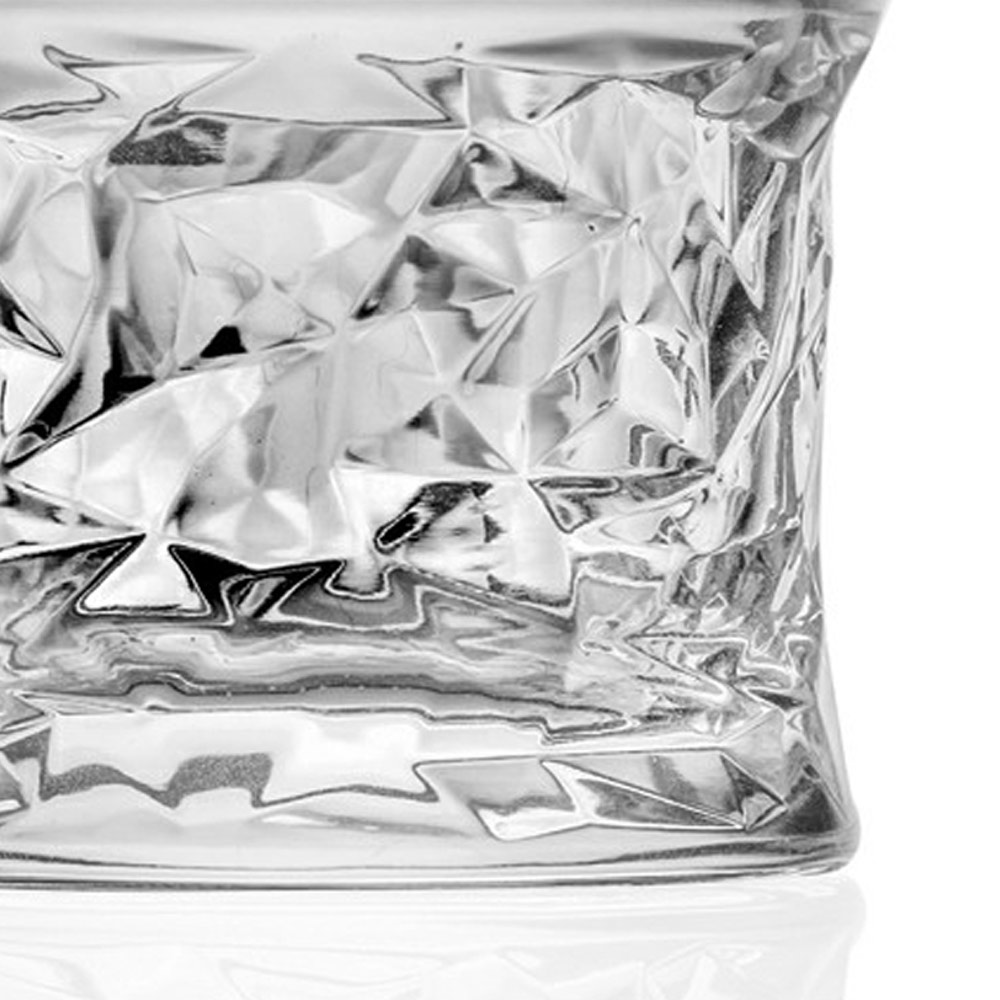 Double old fashioned glasses in eco crystal with square decoration 12 pieces made in Italy.