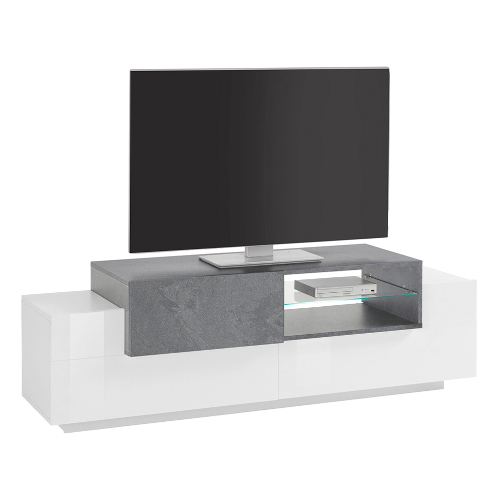 - Glossy white lacquered and slate melamine