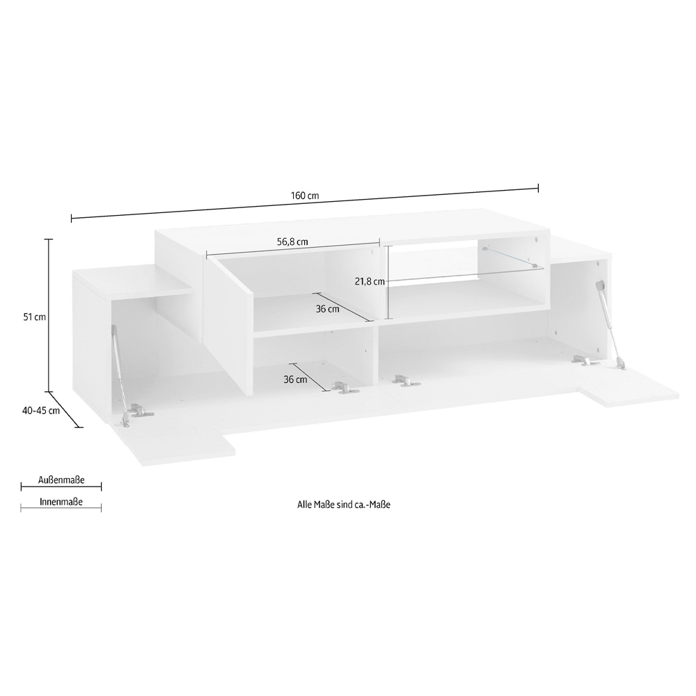 - Lower internal compartment dimensions with soft close: L 107.6-23.4 x D 36 x H 36.8-18 cm