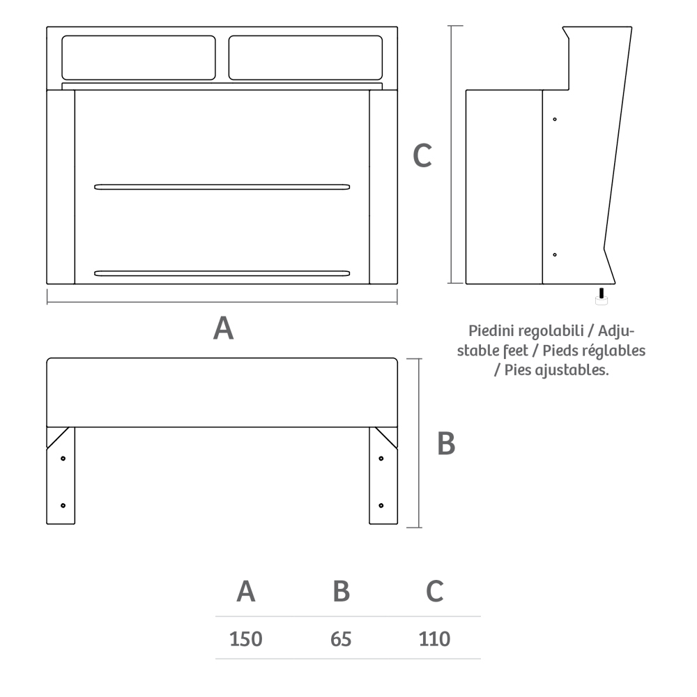 Dimensions:- Counter: Height 110 cm x Depth: 65 cm x Length: 150 cm