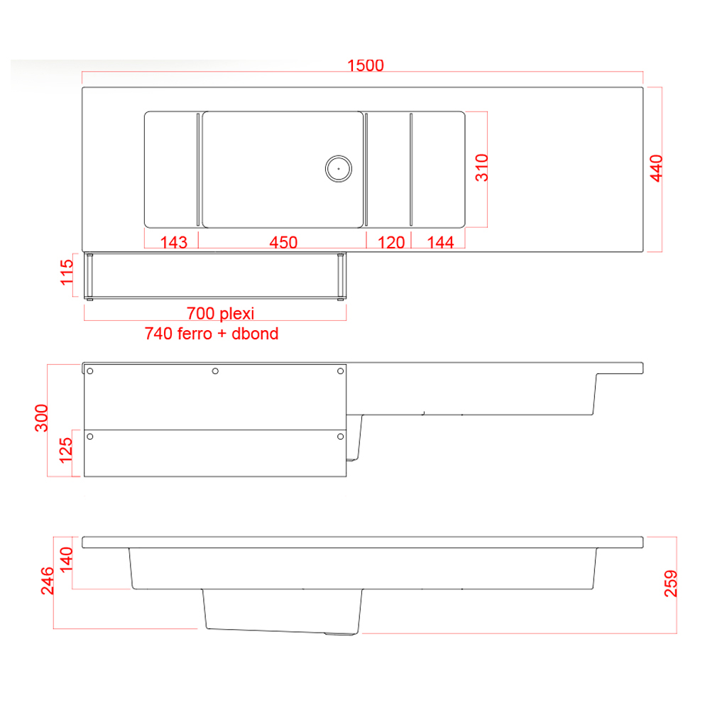 - Organizer accessory: Height 25.9cm x Length 150cm x Depth 44cm